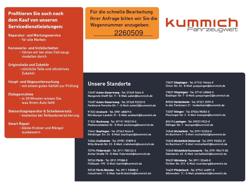 - Den genauen Ausstattungsumfang erhalten Sie von unserem Verkaufspersonal, bitte kontaktieren Sie uns.