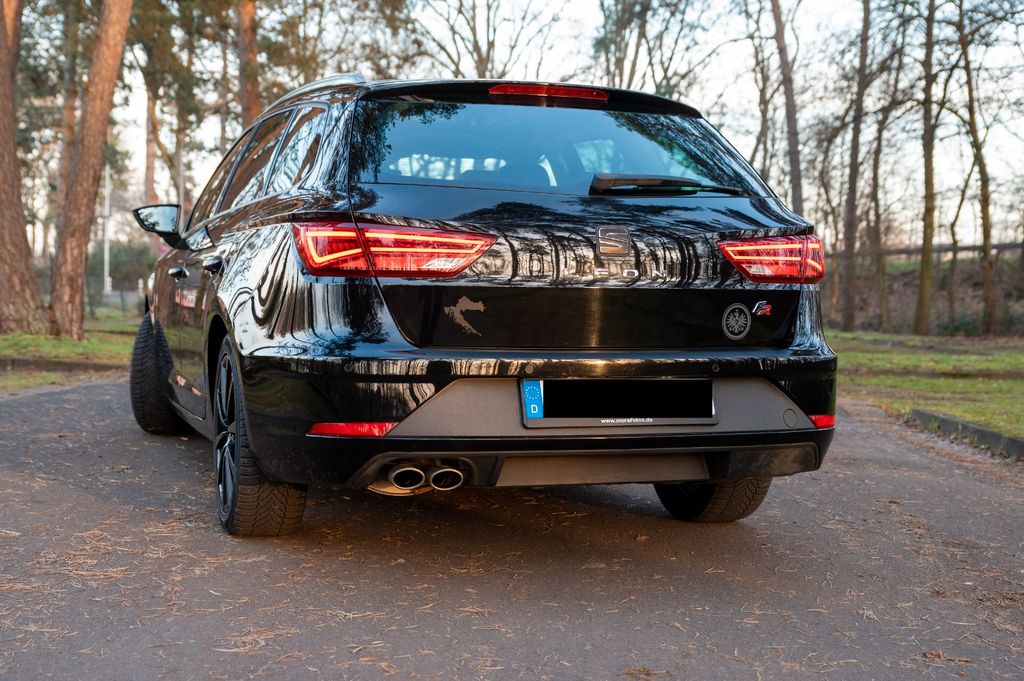 Angeboten wird ein Seat Leon Sportstourer in der sportlichen FR-Line. Dieses Fahrzeug kombiniert dynamisches Fahrverhalten (150 PS) mit praktischem Nutzen und einer extrem umfangreichen Ausstattung. Besonders hervorzuheben sind das elektrische Panorama-Glasschiebedach, das BEATS Soundsystem und die schwarze Vollleder-Ausstattung.