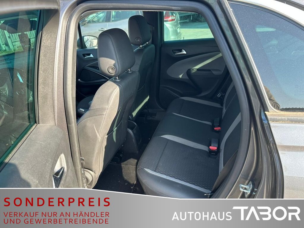 Metallic-/Mineraleffekt-Lackierung, Opel Connect, Wärmeschutzverglasung hinten abgedunkelt (Solar-Protect), Reserverad als Notrad, Armlehne vorn links (Steckdose (12V-Anschluß) in Mittelkonsole), Gepäck-/Laderaumboden doppelt, LM-Felgen 6,5x16 (4-Doppelspeichen), Dach, Design-Ausführung (Chrom) (Fensterzierleisten Edelstahl / Chrom), Sicht-Paket (Innenspiegel mit Abblendautomatik / Leseleuchten im Fond / Sonnenblenden mit Spiegel (beleuchtet) / Einschaltautomatik für Fahrlicht / Einschaltautomatik für Fahrlicht mit Tunnelerkennung / Scheibenwischer mit Regensensor), Audiosystem R 4.0 IntelliLink (Freisprecheinrichtung Bluetooth / USB-Schnittstelle), Ambiente-Beleuchtung Mittelkonsole, Dach Wagenfarbe, Fahrzeugschlüssel (2) beide klappbar, Gepäck-/Laderaumboden höhenverstellbar FlexFloor, Karosserie: 5-türig, Leseleuchten vorn (2), Motor 1,2 Ltr. - 81 kW, Otto-Partikelfilter (OPF), Radstand 2604 mm, Schadstoffarm nach Abgasnorm Euro 6d, Unterfahrschutz-Optik, vorn und hinten (Silber), Anti-Blockier-System (ABS), Bremsassistent, Antriebsart: Frontantrieb, Elektron. Stabilitäts-Programm (ESP), Wegfahrsperre, Getriebe 6-Gang, Klimaautomatik 2-Zonen, Airbag Fahrer-/Beifahrerseite, Fensterheber elektrisch vorn und hinten, One-Touch-Funktion, Kopf-Airbag-System, Rücksitz geteilt / klappbar, Seitenairbag vorn, Bordcomputer, Fahrassistenz-System: Berganfahr-Assistent (HSA, Hill Start Assist), Fahrassistenz-System: Verkehrszeichenerkennung, Geschwindigkeits-Regelanlage (Tempomat), Audiobedienung am Lenkrad, Lenkrad (Leder 3-Speichen), Heckleuchten LED, Nebelscheinwerfer, Scheinwerfer LED Eco, Tagfahrlicht LED, Fahrassistenz-System: Spurverlassenswarnung, Reifendruck-Kontrollsystem, Start/Stop-Anlage