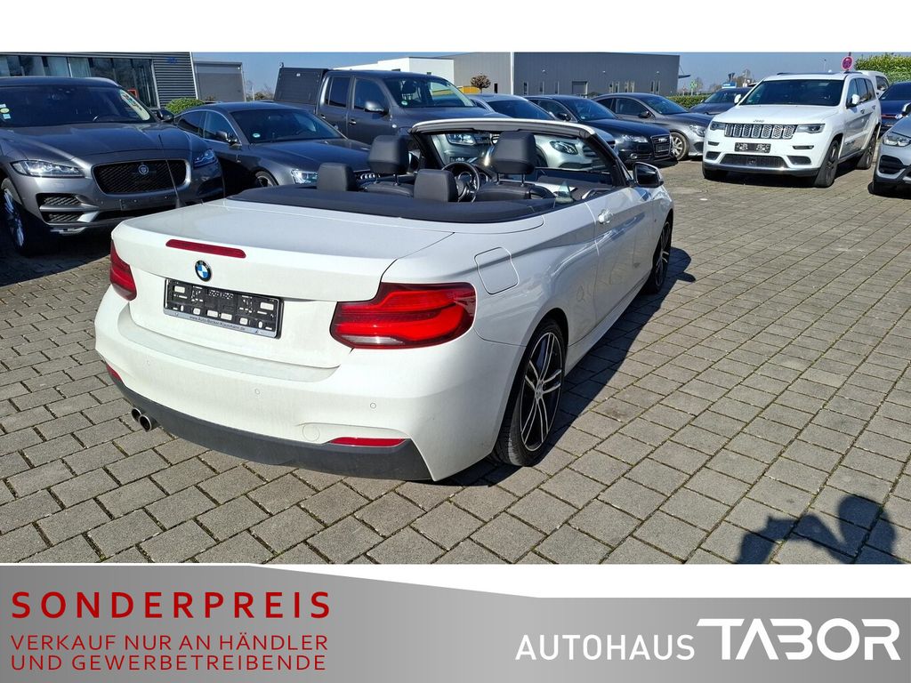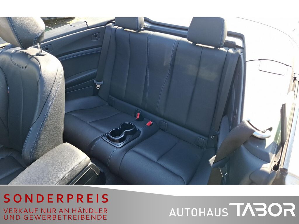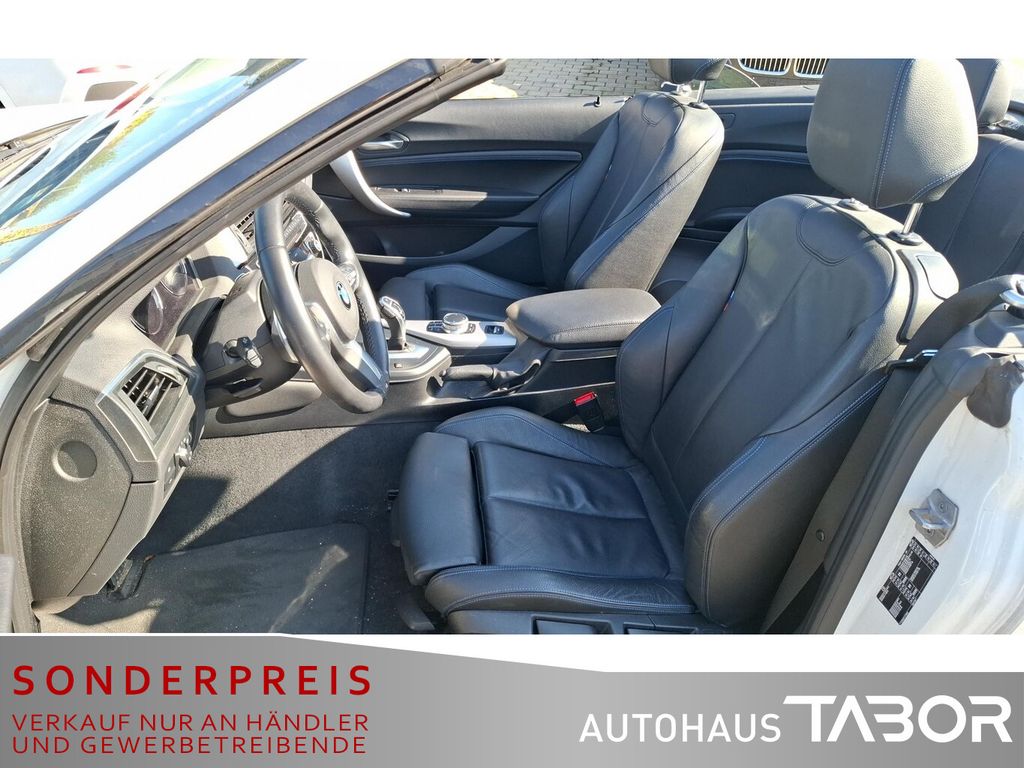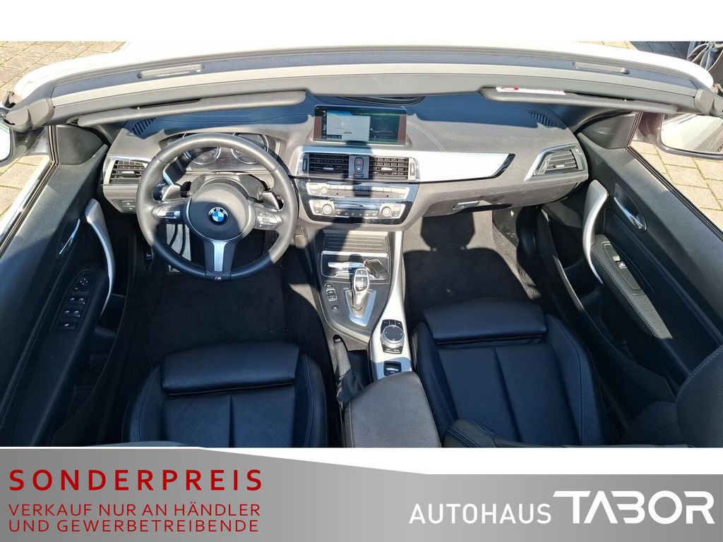 Audio-Navigationssystem Professional (Farbmonitor (8,8 Zoll) / Freisprecheinrichtung mit USB-Schnittstelle), Sitzbezug / Polsterung: Leder Dakota, LM-Felgen vorn/hinten: 7,5x18 / 8x18 (Doppelspeiche 719 M, Bicolor), Scheinwerfer LED mit adaptiver Lichtverteilung, Klimaautomatik 2-Zonen mit autom. Umluft-Control, Außen-/Innenspiegel mit Abblendautomatik, Diebstahl-Warnanlage mit Innenraumabsicherung, Induktionsladeschale für Smartphone (Wireless Charging), Rückfahrkamera, Sitzheizung vorn, Windschutz (Cabrio), DAB-Tuner (Radioempfang digital), Fahrassistenz-System: Speed-Limit-Anzeige, HiFi-Lautsprechersystem, Komfortzugang (Öffnungs- und Schließsystem), Lendenwirbelstütze Sitz vorn links und rechts, elektr. verstellbar, Scheinwerfer-Reinigungsanlage (SRA), Reifensystem Run-Flat (mit Notlaufeigenschaften), Variable Sportlenkung (Servolenkung Servotronic), Durchladeeinrichtung (Mittelarmlehne hinten), Park-Distance-Control (PDC) vorn und hinten, Lenkrad heizbar, Service-System: Real Time Traffic Information (RTTI), Fahrassistenz-System: Fernlichtassistent, Innenausstattung: Interieurleisten Alu Längsschliff fein mit Akzentleiste, Instrumentenkombination (erweiterter Umfang), Nebelscheinwerfer LED, 3. Bremsleuchte, Ablage-Paket, Aerodynamik-Paket M-Technic, Alpinweiß-Lackierung (Uni), Ambiente-Beleuchtung, Auspuffanlage (1-Rohr-Anlage) mit Blende, Außenausstattung: Shadow-Line Hochglanz, Außenspiegel M Wagenfarbe, Außenspiegel Wagenfarbe, Außentemperaturanzeige, Ausstiegsleuchten in Türverkleidung unten, Blinkleuchten LED, Check-Control-System, Dynamische Bremsleuchte, Einstiegsleisten mit Schriftzug M-Technic, Erste Hilfe-Kasten / Verbandkasten, Fußmatten Velours, Fußraumbeleuchtung vorn, Gepäckraumbeleuchtung, Karosserie: 2-türig, Leseleuchten hinten, Leseleuchten vorn, Licht-Paket, M Sport, Modellpflege, Motor 2,0 Ltr. - 135 kW, Nichtraucher-Paket, Personalisierungssystem (Personal Profile), Schadstoffarm nach Abgasnorm Euro 6, Schalt-/Wählhebelgriff Leder (Walknappa), Schaltpunktanzeige, Scheibenwaschdüsen heizbar, Service-System: Remote Services, Sitze vorn mechanisch verstellbar, Steckdose (12V-Anschluß) in Mittelkonsole und Koffer-/Laderaum (4-fach), Überschlag-Schutzsystem (aktiver Überrollbügel), Warndreieck, Audiosystem BMW Professional (Radio/CD-Player MP3-fähig), Freisprecheinrichtung Bluetooth mit USB-/Audio-Schnittstelle, Anti-Blockier-System (ABS), Bremsassistent, Dynamische Stabilitäts-Control (DSC), Dynamische Tractions Control (DTC), LM-Felgen vorn/hinten: 7,5x17 / 8x17 (Doppelspeiche 460 M), Sport-Fahrwerk (M-Technic), Wegfahrsperre, Getriebe Sport-Automatic - mit Steptronic (8-Stufen), Airbag Beifahrerseite abschaltbar, Airbag Fahrer-/Beifahrerseite, Armauflage vorn, Isofix-Aufnahmen für Kindersitz an Rücksitz, Seitenairbag, Sportsitze vorn, Zentralverriegelung mit Fernbedienung, Bordcomputer, Fahrassistenz-System: Fahrerlebnisschalter, Verdeck schwarz, Wärmeschutzverglasung getönt, Geschwindigkeits-Regelanlage mit Bremsfunktion, Service-System: ConnectedDrive Services, Service-System: Intelligenter Notruf inkl. TeleServices, Lenkrad (Leder M-Technic), Lenkrad (Sport/Leder M-Technic) mit Multifunktion, Außenspiegel elektr. verstell- und heizbar, Blinkleuchte in Außenspiegel integriert, Licht- und Regensensor, Reifendruck-Kontrollsystem, Start-Stop-Knopf, Start/Stop-Anlage (Funktion)