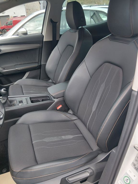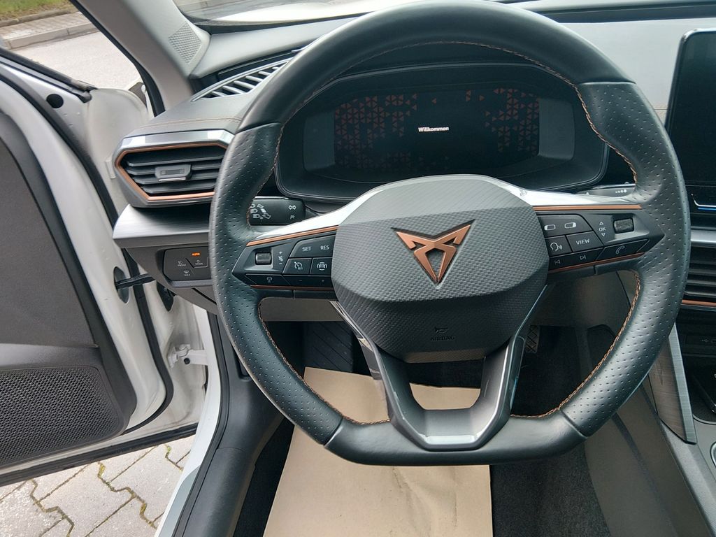 7 Lautsprecher, Airbag Beifahrerseite abschaltbar, Airbag Fahrer-/Beifahrerseite, Antriebs-Schlupfregelung (ASR), Außenspiegel elektr. verstell-, heiz- und anklappbar mit Spiegelabsenkung und Welcome Light, Blinkleuchten LED in Außenspiegel integriert, Bluetooth-Schnittstelle mit Freisprecheinrichtung integriert, Dachreling schwarz, hochglänzend, Doppeltonhorn, Einstiegsleisten (Aluminium) vorn, beleuchtet, Elektron. Differentialsperre (XDS), Fahrassistenz-System: Fahrprofilauswahl (CUPRA Drive Profile), Fensterheber elektrisch vorn + hinten mit Komfortschaltung, Fensterzierleisten schwarz hochglänzend, Gepäckraumabdeckung / Rollo, Heckleuchten Voll-LED mit dynamischem Lichtband (Infinite Light), Isofix-Aufnahmen für Kindersitz an Rücksitz, Karosserie: 5-türig, Klimaanlage Climatronic 3-Zonen, Kombiinstrument digital (virtual cockpit), Kopf-Airbag-System, Laderaumboden variabel und herausnehmbar, Lendenwirbelstütze Sitz vorn links, verstellbar, Lendenwirbelstütze Sitz vorn rechts, verstellbar, Licht- und Sicht-Paket, LM-Felgen, Media-System Plus, Mittelarmlehne hinten, Mittelkonsole vorn mit Mittelarmlehne, Becherhalter, Ablagebox und Luftausströmer hinten, Motor 1,5 Ltr. - 110 kW 16V TSI ACT, Notrufsystem, Otto-Partikelfilter (OPF), Parkbremse elektrisch, Radioempfang digital (DAB+), Radstand 2679 mm, Reifen-Reparaturset, Rücksitzlehne geteilt/klappbar (1/3-2/3), Rücksitzlehnen umklappbar mit Fernentriegelung im Kofferraum, Schadstoffarm nach Abgasnorm Euro 6d, Seitenairbag, Seitenairbag vorn mitte (Central Airbag), Seitenscheiben hinten und Heckscheibe abgedunkelt, Sitz vorn links höhenverstellbar, Sitz vorn rechts höhenverstellbar, Sitzbezug / Polsterung: Stoff, Sonnenblende links mit Spiegel (beleuchtet), Sonnenblende rechts mit Spiegel (beleuchtet), Sportsitze vorn, Start/Stop-Anlage, Steckdose (12V-Anschluß) vorn, Steckdose 230V im Gepäckraum, USB-Ladeanschlüsse (2-fach, Typ C) für 2.Sitzreihe, USB-Schnittstelle vorn (2-fach, Typ C), Verzurrösen Koffer-/Laderaum, Warnanlage für Sicherheitsgurt-System, Wärmeschutzverglasung