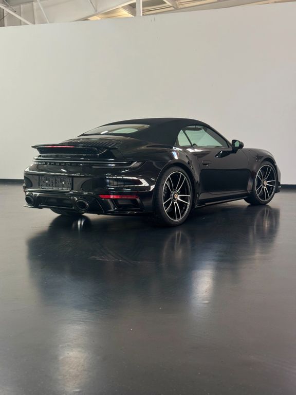 Adaptive Sportsitze inkl. Sitzverstellung 18-Wege und Memory-Paket, Airbag Fahrer-/Beifahrerseite, Antriebsart: Allradantrieb, Außenspiegel asphärisch, links, Außenspiegel elektr. anklappbar, Außenspiegel elektr. verstell- und heizbar, beide, Blinkleuchten LED, Cabrio, Connect Plus (Bluetooth, Apple CarPlay, WLAN, Vehicle-Tracking-System), Dachhimmel Race-Tex, Dachhimmel Stoff, Diebstahl-Warnanlage mit Innenraumüberwachung, Drehzahlmesser, Einschaltautomatik für Fahrlicht, Fahrassistenz-System: Berganfahr-Assistent (Hill-Holder), Fahrassistenz-System: Kollisionswarnsystem mit Bremseingriff und Fußgängererkennung, Fahrassistenz-System: Porsche Dynamic Chassis Control (PDCC), Heckspoiler, Innenraumfilter: Aktivkohlefilter (Geruchsfilter), Interieur-Paket: Carbon, Isofix-Aufnahmen für Kindersitz an Beifahrersitz, Karosserie: 2-türig, Keramik-Bremsanlage (Porsche Ceramic Composite Brake, PCCB), Keyless Drive, Kleiderhaken Sitzrückenlehne Leder, Klimaautomatik 2-Zonen, Mobile Online Dienste Android Auto, Porsche Active Suspension Management (PASM), Porsche Communications Management (PCM) inkl. Online - Navigationsmodul, Porsche Torque Vectoring Plus (PTV Plus), Porsche Traction Management (PTM), Radioempfang digital (DAB+), Radnaben - Abdeckungen Porschewappen farbig, Reifendruck-Kontrollsystem, Schadstoffarm nach Abgasnorm Euro 6d, Schriftzug Modellreihe, Schwellerabdeckung / -verkleidung lackiert, Sitzheizung vorn, Sport Taste, Sport-Chrono-Paket, Start/Stop-Anlage, Turbo, Vehicle-Tracking-System (PVTS), Verdeckbetätigung elektrisch, Verglasung getönt, Vierradlenkung, Windschott elektrisch