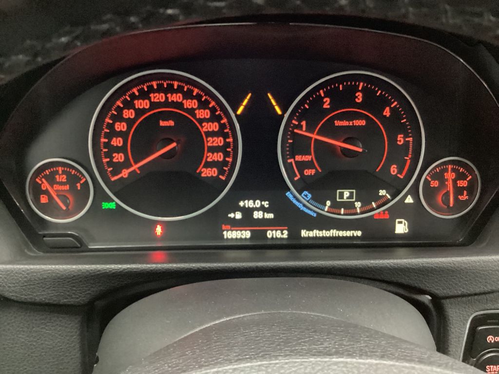 Airbag Beifahrerseite abschaltbar, Airbag Fahrer-/Beifahrerseite, Audiosystem BMW Professional (Radio/CD-Player MP3-fähig), Auspuffanlage (2-Rohr-Anlage) mit Chromblenden, AUX-IN-Anschluss (AUX-IN), Außenspiegel elektr. verstell- und heizbar, Außenspiegel Wagenfarbe, Außentemperaturanzeige, Bordcomputer, Bremsassistent, Check-Control-System, Durchladeeinrichtung (Mittelarmlehne hinten), Dynamische Bremsleuchte, Dynamische Tractions Control (DTC), Fahrassistenz-System: Fahrerlebnisschalter, Farbmonitor (6,5 Zoll), Fernentriegelung Heckklappe, Freisprecheinrichtung Bluetooth mit USB-/Audio-Schnittstelle, Fußmatten Velours, Gepäckraum-Abtrennung (Netz), Gepäckraumabdeckung / Rollo, Getränkehalter, Heckklappenbetätigung automatisch, Heckleuchten LED, Isofix-Aufnahmen für Kindersitz, Karosserie: 5-türig, Klimaautomatik 2-Zonen mit autom. Umluft-Control, Kopf-Airbag-System hinten, Kopf-Airbag-System vorn, Kopfstützen hinten klappbar, Lenkrad (Sport/Leder), Lenksäule (Lenkrad) mechan. verstellbar, Licht-Paket, LM-Felgen, Mittelarmlehne hinten, Modellpflege, Motor 2,0 Ltr. - 140 kW 16V Turbodiesel, Multifunktion für Lenkrad, NOx-Speicherkatalysator (BMW Blue Performance), Personalisierungssystem (Personal Profile), Reifendruck-Kontrollsystem, Schadstoffarm nach Abgasnorm Euro 6, Seitenairbag hinten, Seitenairbag vorn, Service-System: Intelligenter Notruf inkl. TeleServices, Sitzbezug / Polsterung: Stoff/Leder-Kombination Breeze, Sport Line Shadow, Sportsitze vorn, Start-Stop-Knopf, Start/Stop-Anlage (Funktion), Steckdose (12V-Anschluß) zusätzlich, Wärmeschutzverglasung getönt