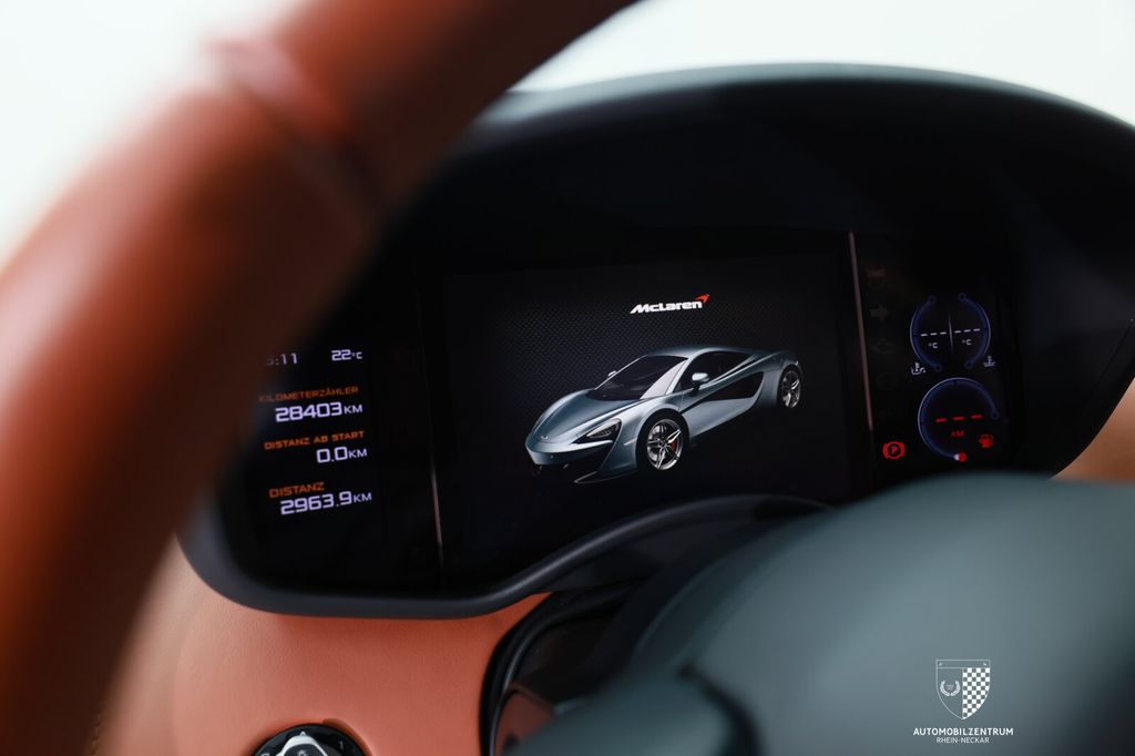 We are delighted to offer you this stunning McLaren 540C in the special Blade Silver paint finish for sale. In addition to the complete ‘By McLaren’ interior in Nappa Tan leather, the vehicle also features a rear-view camera and 10-spoke sports rims. We look forward to hearing from you!