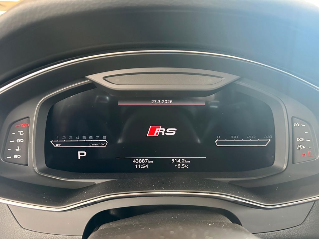 Audi Ringe und Schriftzüge schwarz glänzend, Außenspiegel Wagenfarbe, Einparkhilfe plus vorn, seitlich und hinten, akustisch und optisch mit Umgebungsanzeige, Fahrassistenz-System: Verkehrszeichenerkennung, Kombiinstrument digital (virtual cockpit plus) mit RS-Design, Komfortschlüssel mit sensorgesteuerter Heckklappenentriegelung und Diebstahl-Warnanlage inkl. (öffnen + schliessen), LM-Felgen 10,5x22 (5-V-Speichen, Trapez-Speichen-Design, Anthrazit-Schwarz, glanzgedreht), Matrix-LED-Scheinwerfer mit Laserlicht, Metallic-Lackierung, Neuwagen-Reifengarantie, Optik-Paket schwarz, Panoramadach vorn elektrisch, hinten fest, Rückfahrkamera, Sound-System Bang & Olufsen, Sport-Auspuffanlage, Verglasung hinten abgedunkelt (Privacyverglasung)