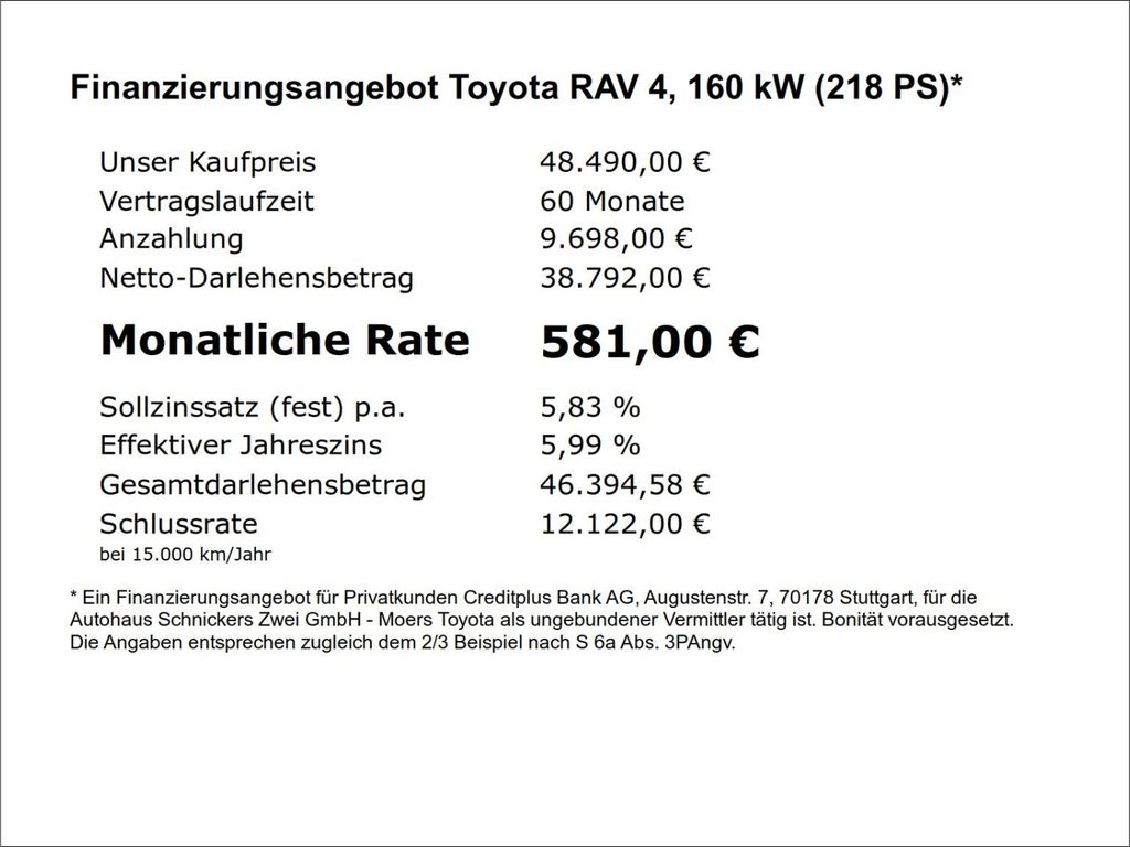 Dieses Angebot gilt nur für Gewerbekunden oder für Privates-Leasing über die Toyota Kreditbank GmbH.Sie sind kein Gewerbekunde oder möchten nicht leasen?