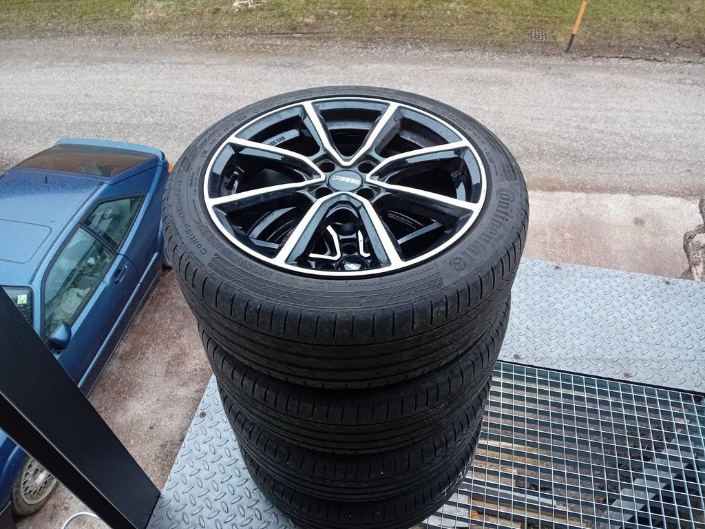 ein Satz 18 ``Sommerreifen mit 3 mm Profil auf Leichtmetallfelgen. Bei diesen Felgen blättert jedoch aufgrund eines Verarbeitungsfehlers die Farbe ab.