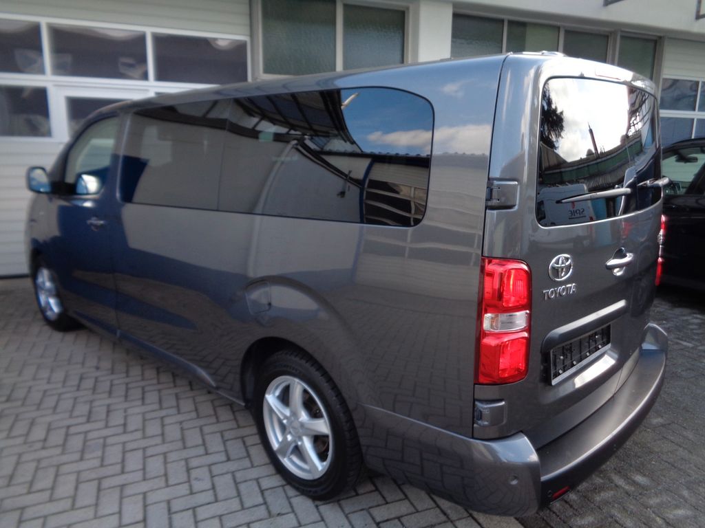 2.Sitzreihe mit Sitzbank geteilt/klappbar, 3. Bremsleuchte, 3.Sitzreihe mit Sitzbank geteilt/klappbar, Airbag Beifahrerseite abschaltbar, Airbag Fahrer-/Beifahrerseite, Audiobedienung am Lenkrad, Audiosystem: Multimedia Toyota Pro Touch, Automatische Stabilitäts-Control und Traktion (ASC + T), Außenspiegel elektr. verstell-, heiz- und anklappbar, Bordcomputer, Bremsassistent, Chromeinfassung für Nebelscheinwerfer, Einparkhilfe vorn und hinten, Einschaltautomatik für Fahrlicht, Elektr. Bremskraftverteilung, Fahrassistenz-System: Berganfahrkontrolle (HAC), Fahrassistenz-System: Totwinkel-Assistent (BLIS), Frontscheibe Verbundglas, Gepäckraum-Abtrennung (Netz), Gepäckraumabdeckung / Rollo, Gepäcksicherungsnetz, Heckflügeltüren mit Verglasung, Heckscheibe heizbar, Heckscheibenwischer, Innenausstattung: Aluminium-Dekor, Innenspiegel mit Abblendautomatik, Isofix-Kindersitz-System, Karosserie/Aufbau: Kombi, Klimaautomatik 2-Zonen, Kopf-Airbag-System, Kopfstützen hinten, Lenksäule (Lenkrad) verstellbar, Leseleuchte, Motor 2,0 Ltr. - 106 kW D-4D KAT, Radstand 3275 mm, Reifendruck-Kontrollsystem, Reserverad in Fahrbereifung, Rückfahrkamera, Schadstoffarm nach Abgasnorm Euro 6, Schadstoffarm nach Abgasnorm Euro 6d, Schiebetür rechts mit Verglasung, Schwellerabdeckung / -verkleidung Wagenfarbe, Seitenairbag hinten, Seitenairbag vorn, Sitz vorn links höhenverstellbar, Sitzheizung vorn, Sonnenschutzrollo an Seitenscheiben hinten, Stop&Go-System (TSGS), Stoßfänger mit Chromeinlage, Toyota Safety Sense, Türgriffe außen verchromt, Wärmeschutzverglasung getönt