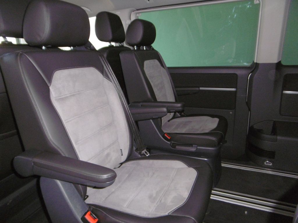 Airbag Beifahrer abschaltbar, Airbag Fahrer-/Beifahrerseite, Antriebs-Schlupfregelung (ASR), Anzeige für Waschwasserstand, Armaturentafel Komfort, Audio-Navigationssystem Discover Media Streaming & Internet (Touchscreen, USB), Ausstattungs-Paket Licht + Sicht, Außenspiegel elektr. verstell-, heiz- und anklappbar, Außenspiegel konvex, links, Außenspiegel konvex, rechts, Außenspiegel und Türgriffe außen in Wagenfarbe, Bodenbelag im Fahrerhaus: Velours-Vlies, Bodenbelag: Teppich verstärkt, Chrom-Paket, Chromleisten Stoßfänger vorn, seitlich und Heckklappe unten, Dachverkleidung Himmel Komfort mit Luftausströmer, Dämmglas-Paket, Fahrassistenz-System: Autom. Distanzregelung (ACC) und Umfeldbeobachtungssystem (Front Assist, bis 210 km/h), Fahrassistenz-System: Bremsassistent (HBA), Fahrassistenz-System: Einparkhilfe vorn und hinten, Fahrassistenz-System: Fernlichtregulierung (Light Assist), Fahrassistenz-System: Multikollisionsbremse (Multi Collision Brake), Fahrassistenz-System: Seitenwind-Assistent, Fahrassistenz-System: Spurwechselassistent (Side Assist / Blind Spot Sensor), Fahrassistenz-System: Verkehrszeichenerkennung, Fahrwerk 17", Fenster im Lade-/FG-Raum: - feststehend, vorn und hinten links, Fenster im Lade-/FG-Raum: - feststehend, vorn und hinten rechts, Frontscheibe Dämmglas, Funkschlüssel (2) klappbar, Fußmatten Fahrerhaus: Velours, Gepäckraumabdeckung / Rollo, Haltegriffe A-Säulen, Handschuhfach abschließbar, Handschuhfach beleuchtet, Heckklappe mit Verglasung, Heckscheibe heizbar, mit Wischanlage, Innenausstattung: Dekoreinlagen Pewter Wave Grey, Innenleuchten im Fahrerhaus: Leseleuchten vorn (2), Innenleuchten im Lade-/FG-Raum: LED, Innenleuchten im Lade-/FG-Raum: Trittstufenleuchten, Innenraumfilter: Pollenfilter, Innenspiegel mit Abblendautomatik, Karosserie/Aufbau: Bus, Karosserievariante: Normaldach, Klimaautomatik Climatronic (Fahrerhaus + Lade-/Fahrgastraum), Kühlergrill schwarz lackiert, mit Chromleisten, Ladekanten-/ Trittstufenabdeckungen in Edelstahl, Lenksäule (Lenkrad) verstellbar, Mobile Online Dienste App-Connect Wired und Wireless, Mobile Online Dienste We Connect Plus, Mobiltelefon Schnittstelle Bluetooth, Motor 2,0 Ltr. - 146 kW TDI, Multimedia-Schnittstelle 2 x USB (Typ C) vorn und 2 x USB-Ladeanschluß an C-Säule, Nichtraucher-Paket, Notrufsystem, Radstand 3000 mm, Reifenkontroll-Anzeige, Schadstoffarm nach Abgasnorm Euro 6d-TEMP, Scheinwerfer und Heckleuchten LED, Schiebetür Lade-/Fahrgastraum rechts, SCR-System (AdBlue-Technologie), Seitenairbag / Kopfairbag (Curtain-Airbag) vorn, Seitenscheiben Dämmglas, Servolenkung elektro-mechanisch, Sitzbezug / Polsterung: ArtVelours / Kunstleder, Sitze im Fahrerhaus: Beifahrersitz Komfort, Sitze im Fahrerhaus: Fahrer- und Beifahrersitz heizbar, Sitze im Fahrerhaus: Fahrer- und Beifahrersitz höhenverstellbar, Sitze im Fahrerhaus: Fahrersitz Komfort, Sitze im Fahrerhaus: Lendenwirbelstützen Fahrer- und Beifahrersitz, Sitze im Lade-/FG-Raum: 1.Reihe, 2 Drehsitze, Sitze im Lade-/FG-Raum: 2.Reihe, 3er-Sitzbank, Sonnenblenden mit Spiegel (beleuchtet), Sonnenschutzrollo im Fahrgastraum, Sprachsteuerungs-System, Start/Stop-Anlage Motor, Steckdosen (12V-Anschluß) im Fahrerhaus (2 Stück), Steckdosen (12V-Anschluß) im Lade-/Fahrgastraum (2 Stück), Stoßfänger in Wagenfarbe, Verglasung hinten abgedunkelt, Verkleidung im Lade-/FG-Raum: Komfort, Verzurrösen Laderaum, Warnanlage für Sicherheitsgurt (Fahrerseite), Zentralverriegelung mit Fernbedienung und Innenbetätigung, Zuheizer, Zul. Gesamtgewicht 3,00 t
