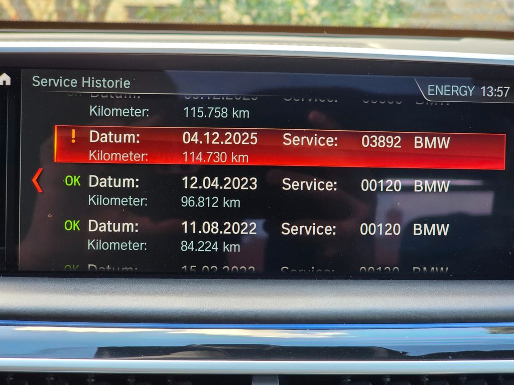 Sonderausstattung:Außenausstattung: Design Pure Excellence, Business-Paket, DAB-Tuner (Radioempfang digital), Dachhimmel Alcantara / Anthrazit, Infotainment-System: BMW Touch Command, Innovations-Paket, Instrumentenanzeige, multifunktional, LM-Felgen vorn/hinten: 8,5x20 / 10x20 (W-Speiche 646, hochglanzpoliert), Metallic-Lackierung, Panoramadach (Glas), Rückfahrkamera, Service-System: Apple CarPlay Information (Vorbereitung), Sound-System Harman-Kardon, Standheizung, Wärme-Komfort-Paket