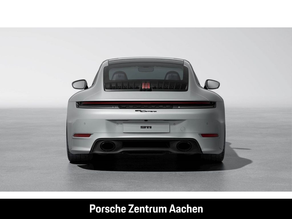 - Weiteres: (3FE) Elektrisches Schiebe-/Hubdach aus Glas, (3S4) Vorbereitung Dachtransportsystem, (0NC) Modellbezeichnung lackiert in Schwarz (hochglanz), (2D1) SportDesign Paket, (KQ2) „PORSCHE“ Schriftzug lackiert in Schwarz (hochglanz), (1N3) Servolenkung Plus, (8LH) Sport Chrono Paket inkl. Porsche Track Precision App & Reifentemperaturanzeige, (0P9) Sportabgasanlage (Endrohrblenden in schwarz), (0I2) 84 Liter Kraftstofftank, (1NW) Räder lackiert in Tiefschwarzmetallic, (1G8) Reifendichtmittel mit elektrischem Kompressor, (C8T) 20-/21-Zoll Carrera S Räder, (Q4Q) Sportsitze Plus (4 Wege, elektrisch), (3J7) Porsche Wappen auf Kopfstützen, (3UG) Hintersitzanlage, (2ZF) GT-Sportlenkrad Race-Tex inkl. Lenkradheizung, (6NN) Dachhimmel Race-Tex, (VT2) Türeinstiegsblenden Aluminium gebürstet in Darksilver, beleuchtet, (QE3) Ablagenetz Beifahrerfußraum, (9VL) BOSE® Surround Sound-System, (8IU) HD-Matrix LED-Hauptscheinwerfer, (4GP) Windschutzscheibe mit Graukeil, (4KF) Privacy-Verglasung, (FT3) Surround View inkl. Aktive Einparkunterstützung, (7Y8) Spurwechselassistent