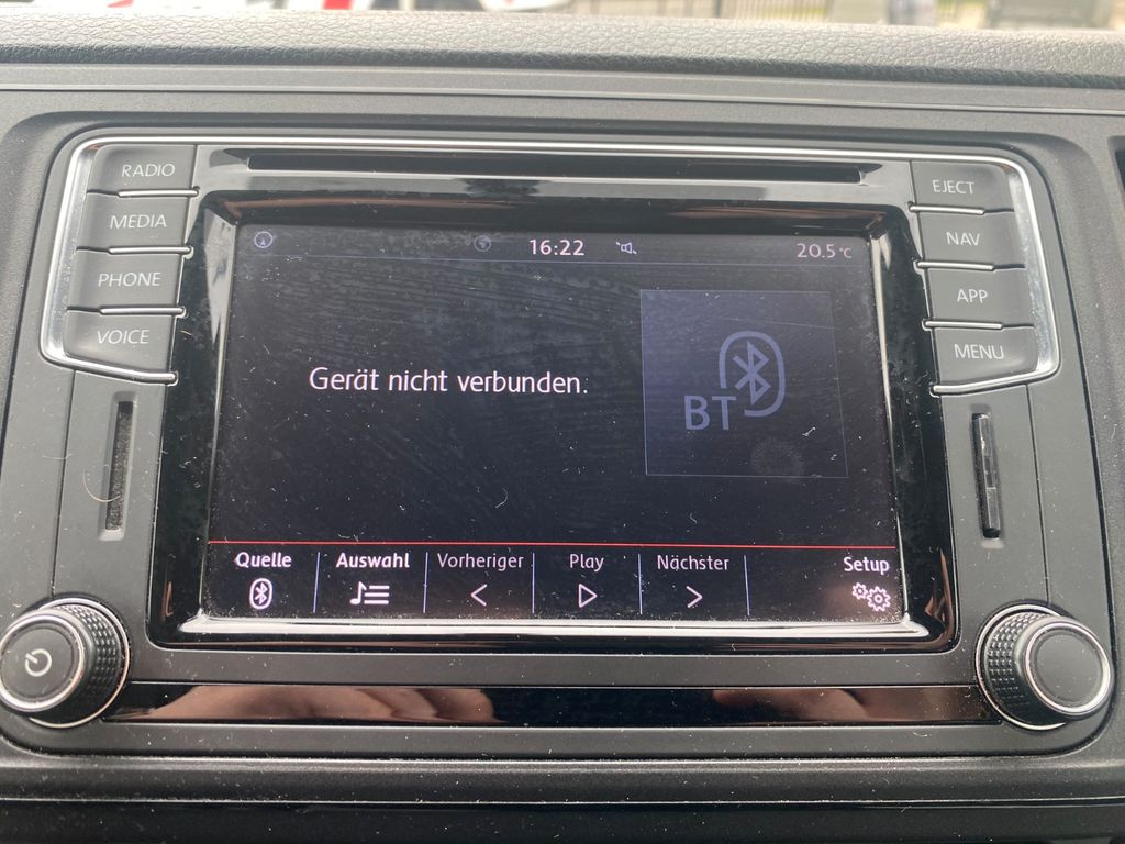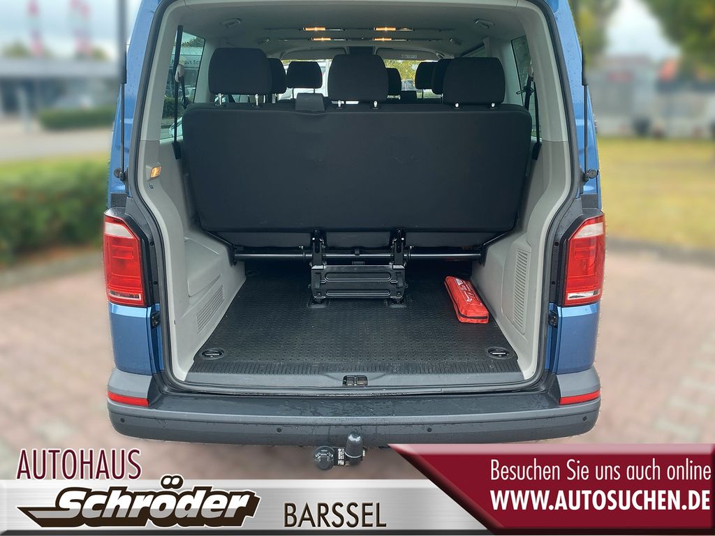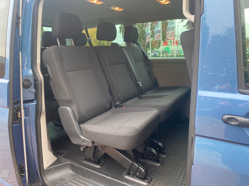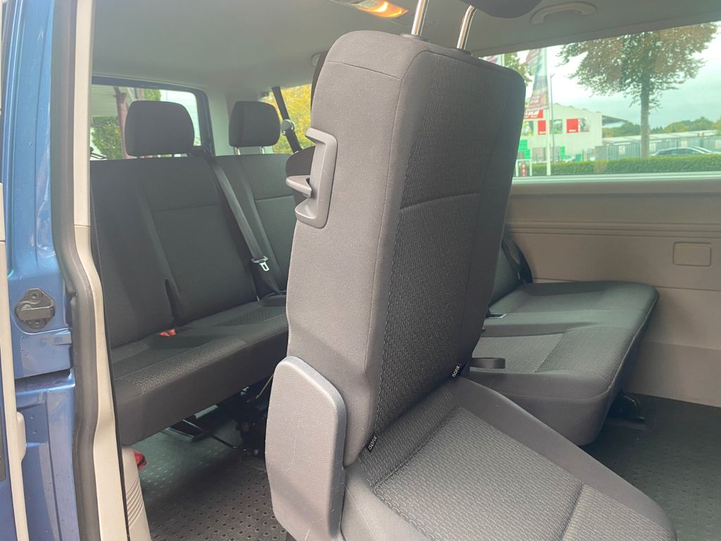 Sonderausstattung:Audio-Navigationssystem Discover Media (Touchscreen-Farbdisplay), Ausstattungs-Paket Licht + Sicht, Ausstattungs-Paket: Komfort-Paket, Fahrassistenz-System: Einparkhilfe vorn und hinten, Funkschlüssel (4) klappbar, Isofix-Aufnahmen für Kindersitz an Rücksitz, Kindersicherung an den Schiebetüren, Klimaautomatik Climatronic (Fahrerhaus + Lade-/Fahrgastraum), Lackierung: Metallic-Lackierung, Mobiltelefon Schnittstelle Bluetooth, Multifunktionsanzeige Plus, Reserverad in Fahrbereifung, Sitz-Paket: 9-Sitzer, 3-3-3 (Fahrersitz und Beifahrerdoppelsitz, 2er-Sitzbank und Einzelsitz, 3er-Sitzbank), Verglasung hinten abgedunkelt, Zuziehhilfe für Heckklappe, Zuziehhilfe Schiebetür rechts