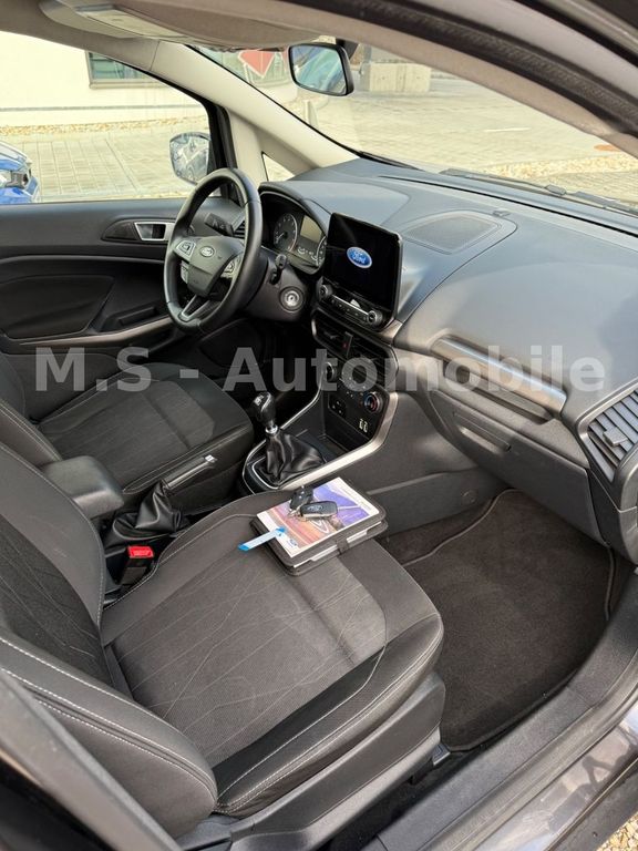 Dieser gepflegte Ford EcoSport SUV aus 2019 überzeugt durch seine umfangreiche Ausstattung und seinen tadellosen Zustand. Mit nur einem Vorbesitzer und lückenloser Servicehistorie bietet dieses Fahrzeug Zuverlässigkeit und moderne Technik. Der Benzinmotor mit 125 PS sorgt für angenehme Fahrleistungen bei gleichzeitiger Effizienz (Emissionsklasse Euro 6d-TEMP). Die graue Außenlackierung harmoniert perfekt mit dem schwarzen Stoffinterieur.Die Ausstattung umfasst zahlreiche Komfort- und Sicherheitsmerkmale: manuelle Klimaanlage, Navigationssystem, Apple CarPlay und Android Auto, beheizbare Frontscheibe und Sitze sowie ein beheizbares Lenkrad. Für zusätzliche Sicherheit sorgen Front- und Seitenairbags, ABS, ESP und Parksensoren vorne und hinten. Die abnehmbare Anhängerkupplung ermöglicht Transporte mit dem Anhänger.