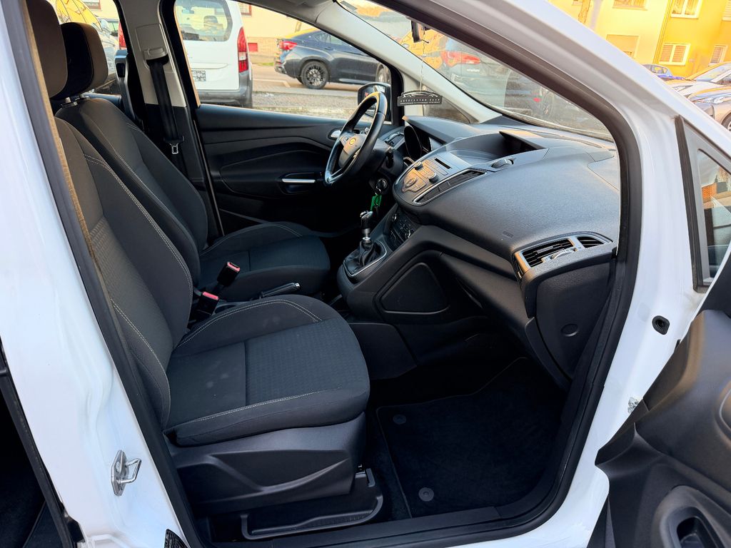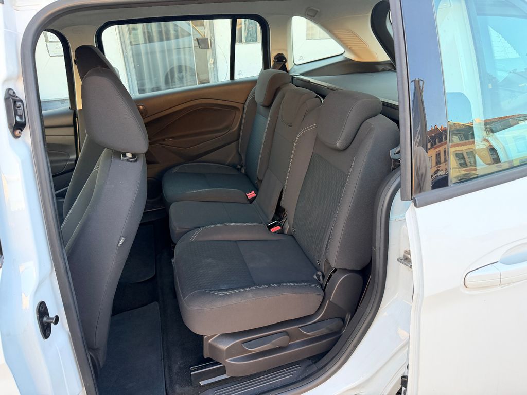 6 Lautsprecher, Antischlupfregelung (ASR), Audiosystem: Radio mit CD-Player (MP3-fähig), Außenspiegel elektr. verstell- und heizbar, Blinkleuchte in Außenspiegel integriert, Bordcomputer, Dachspoiler Wagenfarbe, Elektr. Bremskraftverteilung (EBD), Fahrassistenz-System: Berganfahr-Assistent (Hill-Holder), Fensterheber elektrisch vorn + hinten mit Komfortschließung, Flexibles Sitzsystem FFS, Gepäckraumabdeckung / Rollo, Innenraumfilter: Staub- und Pollenfilter, Intelligent Protection System (IPS), Isofix-Aufnahmen für Kindersitz, Karosserie: 5-türig, Kindersicherung elektrisch, Komfortsitze vorn, Kopfstützen hinten verstellbar, Lendenwirbelstütze Sitz vorn links, Lenksäule (Lenkrad) höhen-/längsverstellbar, Mittelkonsole, Motor 1,0 Ltr. - 92 kW EcoBoost KAT, My Key, Reifen-Reparaturkit, Reifendruck-Kontrollsystem, Schadstoffarm nach Abgasnorm Euro 6, Schalt-/Wählhebelgriff Leder, Schiebetüren beidseitig, Sitz vorn links höhenverstellbar, Stahlfelgen 6,5x16, Start/Stop-Anlage, Steckdose (12V-Anschluß) im Koffer-/Laderaum, Stoßfänger Wagenfarbe, Stoßfängergrill, Rahmen Chrom, Türgriffe außen Wagenfarbe, Verglasung getönt