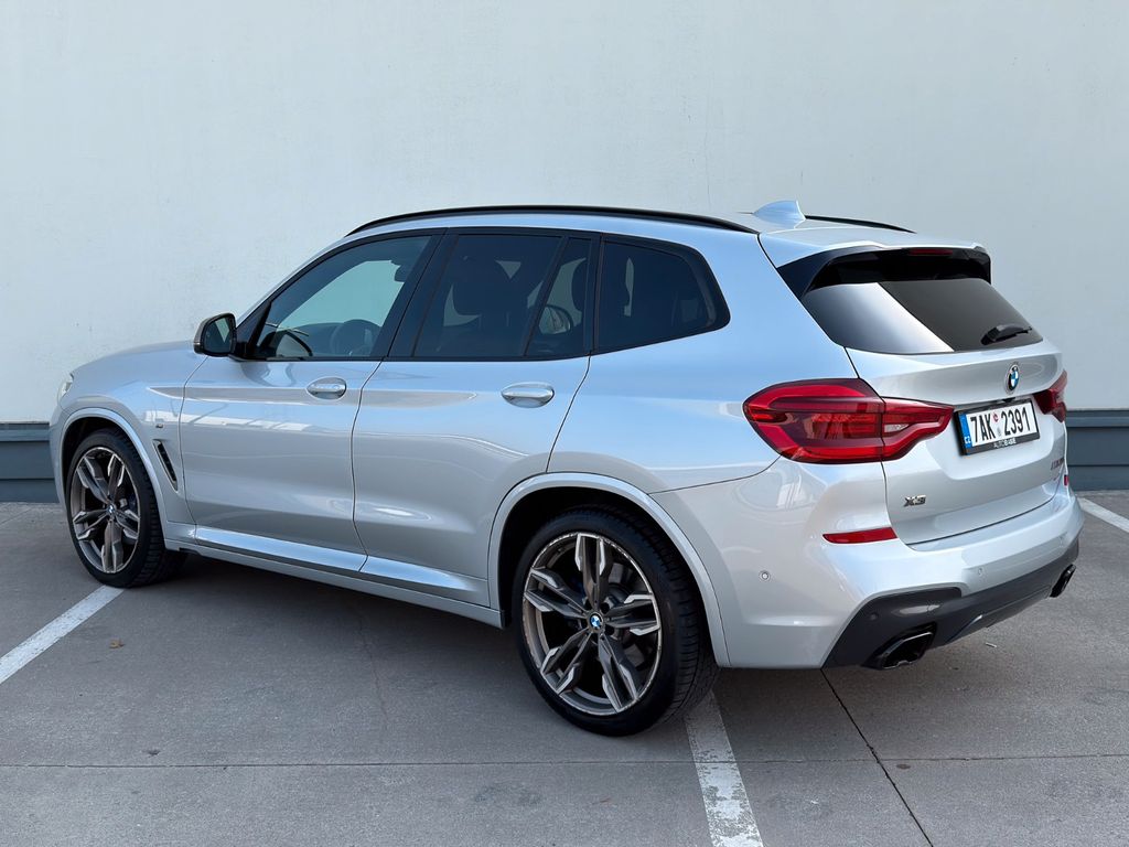BMW X3 M40i xDrive, first registration 13.02.2019, 135,205 km, from the Czech Republic, VAT deductible. Highly attractive configuration in Glacier Silver Metallic with Vernasca Mocha full leather, 21" M alloy wheels, electrically adjustable, ventilated and heated seats, Head-Up Display, Driving Assistant Plus, Parking Assistant with camera, adaptive LED headlights incl. BMW Selective Beam, and acoustic glazing.