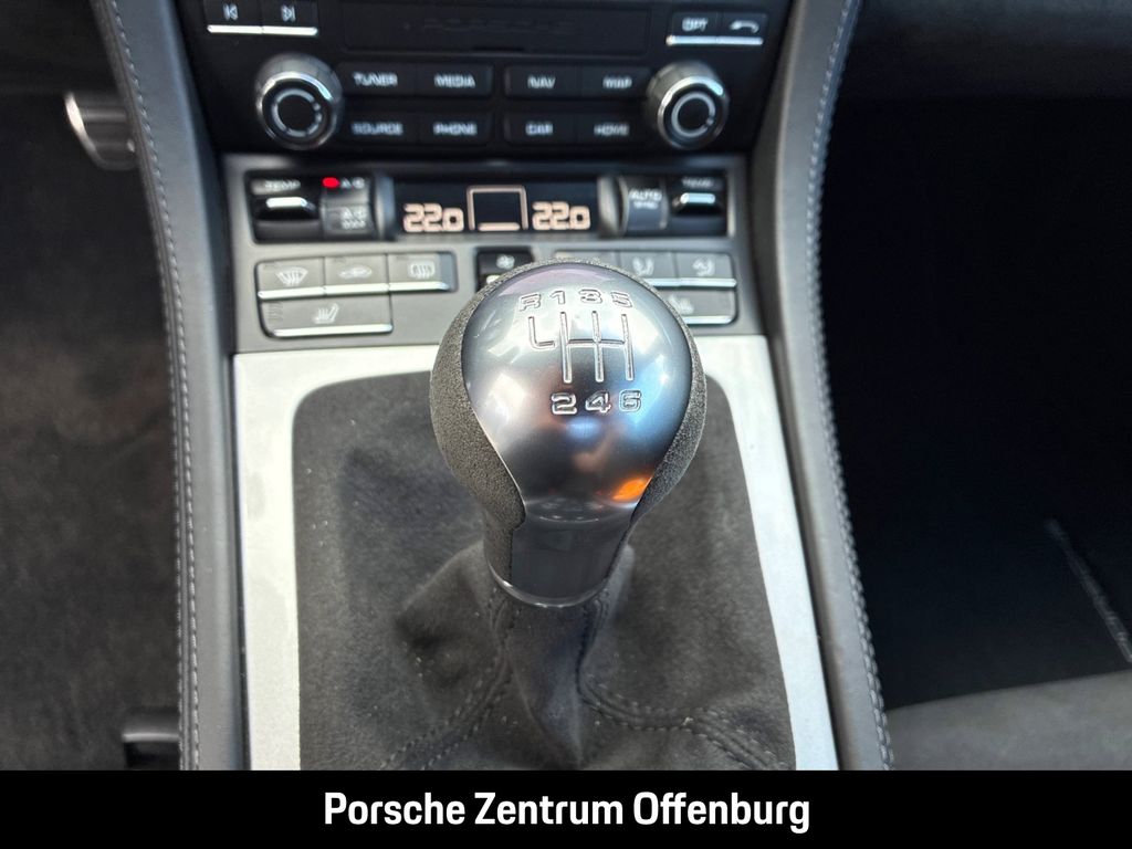 - Weiteres: Scheinwerfer-Reinigungsanlage (SRA), Reifendruck-Kontrollsystem, Reifen-Reparaturkit, Verglasung getönt, Außenspiegel elektr. verstell- und heizbar, beide, Alarmanlage, Audiosystem: Radio mit CD-Player, Sportsitze - Rückenlehnen lackiert, LM-Felgen, Sport-Fahrwerk tiefergelegt (30 mm), Schadstoffarm nach Abgasnorm Euro 6d, Lenkrad (GT Sport - Alcantara / Race-Tex), Bi-Xenon-Scheinwerfer, Porsche Communications Management (PCM), Porsche Torque Vectoring (PTV), Sport-Fahrwerk (PASM) elektronisch gesteuert, Innenraumfilter: Aktivkohlefilter (Geruchsfilter), Navigationsmodul inkl. Connect Plus für Porsche Communications Management (PCM), Klimaautomatik 2-Zonen, LM-Felgen (schwarz, seidenglänzend lackiert), Airbag Fahrer-/Beifahrerseite, Wegfahrsperre, Lenksäule (Lenkrad) verstellbar, Heckleuchten LED, abgedunkelt, Multimediabuchse AUX-IN und USB-Schnittstelle, Tagfahrlicht LED, Kopf-Airbag-System Porsche Side Impact Protection System (POSIP), Metallic-Lackierung, Anzeigeinstrumente mit Hintergrund schwarz, Außen-/Innenspiegel mit Abblendautomatik, Außenspiegel elektr. anklappbar, Blinkleuchten LED, Bremssättel Rot lackiert, Drehzahlmesser, Einschaltautomatik für Fahrlicht, Frontscheibe mit Bandfilter, Getränkehalter, Heckflügelspoiler, Hinterachs-Quersperre mechanisch, Innenausstattung: Leder Alcantara, Interieur-Paket lackiert, Kopf-Schulter-Airbag vorn (Thoraxbag), Kraftstofftank: 64 Ltr., Lufteinlassblende Seitenwand lackiert, Mittelkonsole Blende vorn lackiert, Motor 4,0 Ltr. - 309 kW KAT, Park-Assistent, Parkbremse elektrisch, Porsche Car Connect, Radioempfang digital (DAB+), Radnaben - Abdeckungen Porschewappen farbig, Schriftzug Porsche und Modellbezeichnung lackiert, Servolenkung elektro-mechanisch, Sitzheizung vorn, Sound-Package Plus, Sport-Abgasanlage, Sportsitze, Start/Stop-Anlage, Verdeckbetätigung manuell, Vorrüstung Mobiltelefon/Handy, ZV mit Fernbedienung