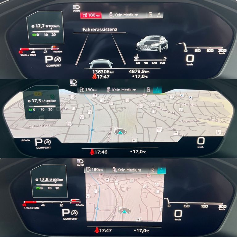 Sonderausstattung: SPORT....PANORAMIC....VIRTUAL COKPYT....SPORT SITZE....RÜCKFAHRKAMERA...MATRIX SCHEINWERFER...TÜV NEU...SCHECKHEFTGEPFLEGT...uvm......Assistenz-Paket Parken, Dachhimmel Stoff, schwarz, Fondsitzanlage (3 Sitzplätze), Gepäckraumklappe elektr. betätigt (öffnen + schliessen), Infotainment-Paket, Innenausstattung: Dekoreinlagen Aluminium Ellipse silber, Kombiinstrument digital (virtual cockpit plus), Komfort-Paket Spiegel, Kraftstofftank: 54 Ltr., Lenkrad (Leder - 3-Speichen) mit Multifunktion plus und Schaltfunktion, LM-Felgen 8,5x18 (5-Doppelspeichen, Stern-Design, S-Design), Matrix-LED-Scheinwerfer, Metallic-Lackierung, Navigations-Paket, Panorama-Ausstelldach elektrisch, Seitenairbag hinten, Sitzbezug / Polsterung: Leder / mono.pur 550 Kombination, Sitzheizung vorn, Sound-System DSP / Audi Sound-System, Sportsitze vorn, Verglasung hinten abgedunkelt (Privacyverglasung)