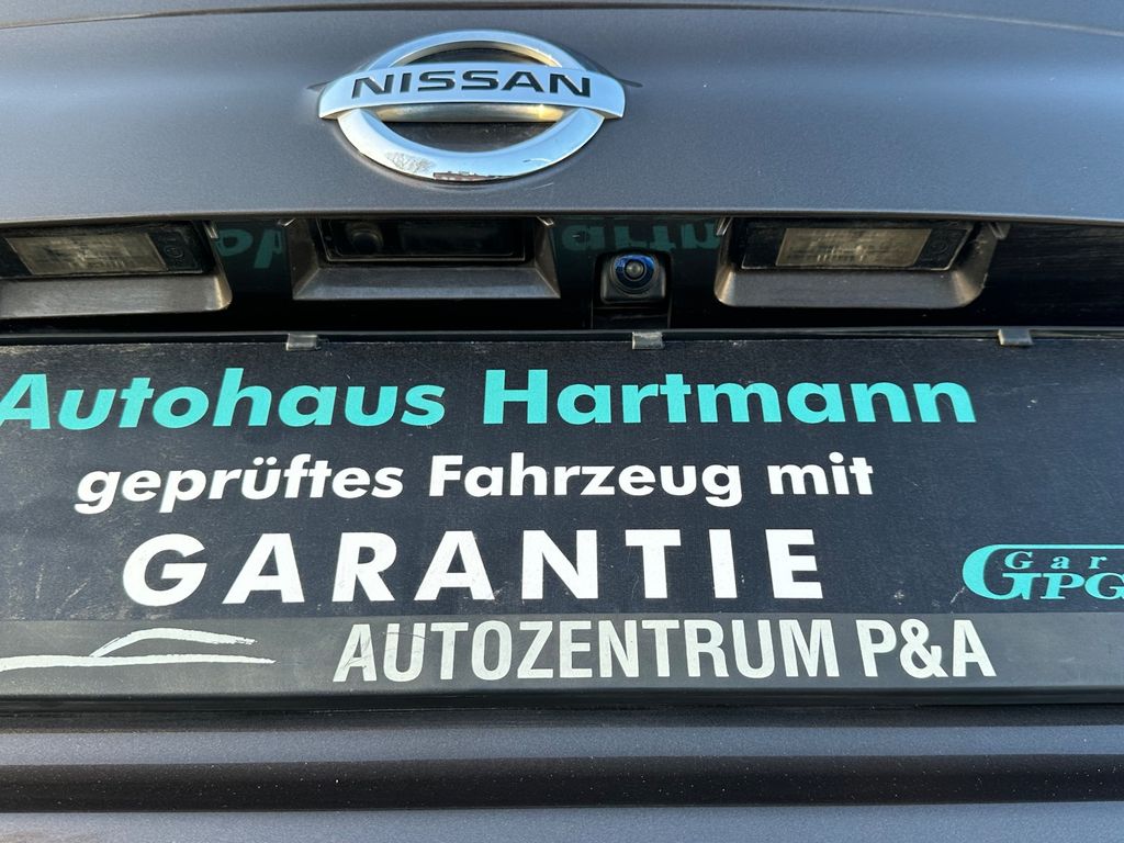 3. Bremsleuchte, 6 Lautsprecher, Airbag Beifahrerseite abschaltbar, Airbag Fahrer-/Beifahrerseite und Seitenairbag vorn, Ambiente-Beleuchtung, Audiobedienung am Lenkrad, Audiosystem: Radio mit CD- und MP3-Player, Ausstattungs-Paket: Nissan Connect, Auto-Hold-Funktion, Automatische Fahrlichtschaltung, AUX-IN-Anschluss (AUX-IN), Außenspiegel elektr. anklappbar, Außenspiegel elektr. verstell- und heizbar, Außenspiegel Wagenfarbe, Außentemperaturanzeige, Blinkleuchte in Außenspiegel integriert, Bluetooth-Schnittstelle, Bordcomputer, Bremsassistent (Nissan Brake-Assist), Coming-Home-Lichtfunktion (Friendly Lightning), Elektr. Bremskraftverteilung (EBD), Fahrassistenz-Paket Visia, Fahrassistenz-System: Aktive Fahrkomfortregelung (Fahrwerksdämpfung), Fahrassistenz-System: Aktive Motorbremse, Fahrassistenz-System: Fernlichtassistent, Fahrassistenz-System: Kurvenbremskontrolle (Aktive Spurkontrolle), Fahrer-Informations-System (FIS) mit Farbdisplay, Fensterheber elektrisch vorn + hinten, Fernentriegelung Tankklappe, Freisprechanlage Bluetooth, Frontscheibe Verbundglas, Gepäck-/Laderaum-Unterteilung (Flexi-Board), Gepäckraumabdeckung / Rollo, Getränkehalter in Mittelkonsole, Gurtstraffer, Handschuhfach beleuchtet, Heckscheibe heizbar, Innenraumfilter: Pollenfilter, Isofix-Aufnahmen für Kindersitz, Karosserie: 5-türig, Klimaautomatik 2-Zonen, Kopf-Airbag-System, Kopfstützen vorn und hinten verstellbar, Lendenwirbelstütze Sitz vorn links, Lenksäule (Lenkrad) höhen-/längsverstellbar, Leseleuchte vorn, LM-Felgen, Mittelarmlehne hinten, Modellpflege, Motor 1,3 Ltr. - 117 kW 16V KAT, Nebelschlussleuchte, Parkbremse elektrisch, Radioempfang digital (DAB), Radstand 2646 mm, Reifendruck-Kontrollsystem, Rückfahrkamera, Rücksitz geteilt/klappbar, Schadstoffarm nach Abgasnorm Euro 6d-TEMP, Schalt-/Wählhebelgriff Leder, Schaltpunktanzeige, Scheibenwischer mit Intervallschaltung, Sitz vorn links höhenverstellbar, Sitz vorn rechts höhenverstellbar, Sonnenblenden mit Spiegel, Sprachbediensystem Spracherkennung, Start-Stop-Knopf, Start/Stop-Anlage, Steckdose (12V-Anschluß) in Mittelkonsole, Türgriffe innen verchromt, USB-Schnittstelle, Verglasung hinten abgedunkelt, Wärmeschutzverglasung mit UV-Schutz