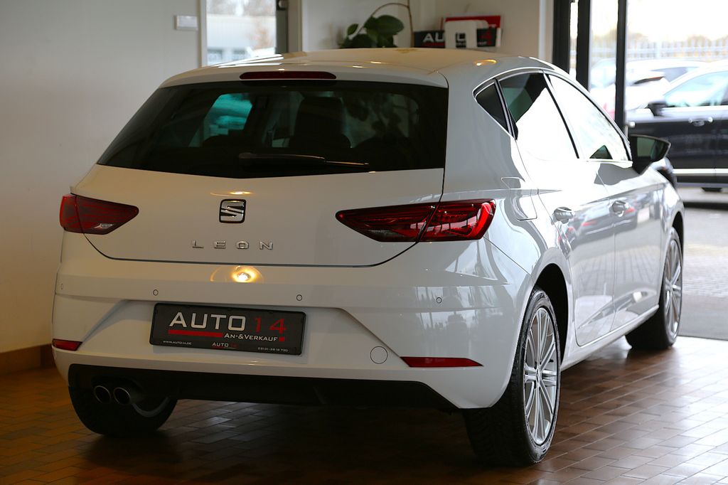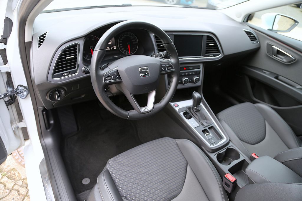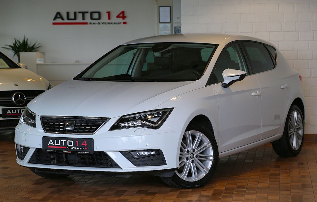 Sonderausstattung:Design- und Ausstattungslinie: Xcellence, Allwetter-/ Ganzjahresreifen, Außenspiegel elektr. anklappbar, Außenspiegel lackiert, Business-Paket Infotain, Einparkhilfe vorn und hinten, optisch, Fahrassistenz-Paket 4, Klimaanlage Climatronic 2-Zonen, Metallic-Lackierung, Reserverad als Notrad, Scheinwerfer LED, Sicherheits-Paket, Seitenscheiben hinten und Heckscheibe abgedunkelt, SEAT Media-System Plus, Außenspiegel elektr. anklappbar, Keyless Access (Schlüsselloses Start/-Schließsystem), Soundsystem Seat Sound, Sitzbezug / Polsterung: Teilleder Sportsitze, Sitzheizung, Navigationssystem Seat, Spurhalteassistent, Front Assist, Verkehrszeichenerkennung, Bluetooth Audio/USB/SD/Apple CarPlay/Androidauto/MirrorLink, Ambiente-Beleuchtung LED, Sport-Lederlenkrad mit Multifunktion und Schaltwippen, Sprachsteuerungs-System, LM-Felgen, ACC Abstandstempomat, Radio DAB, Schadstoffarm nach Abgasnorm Euro 6