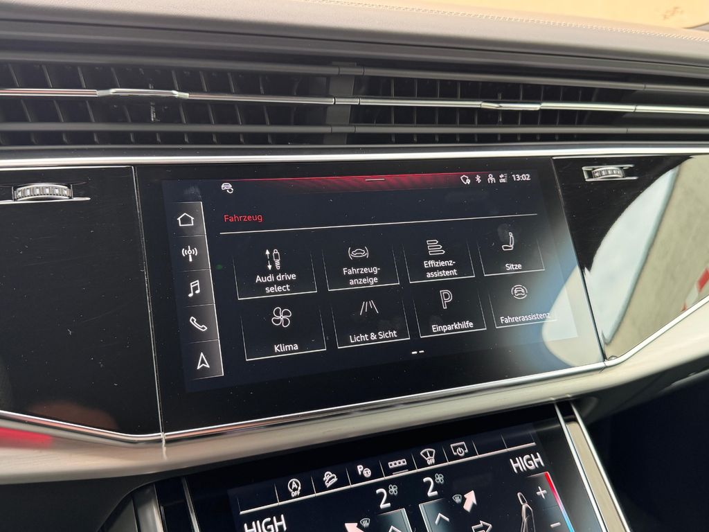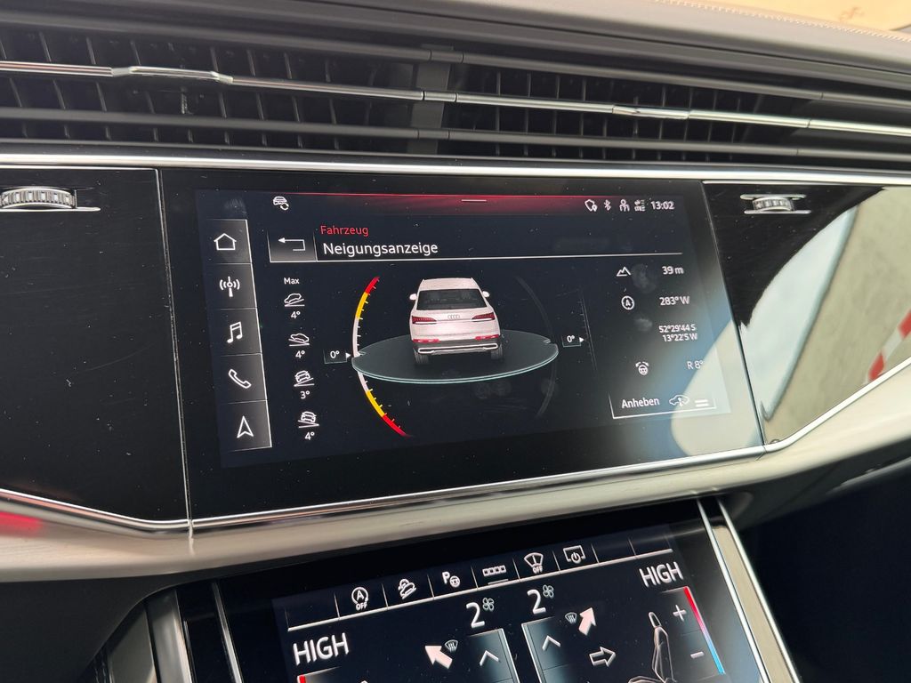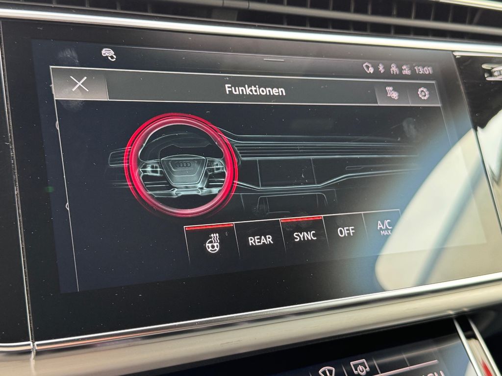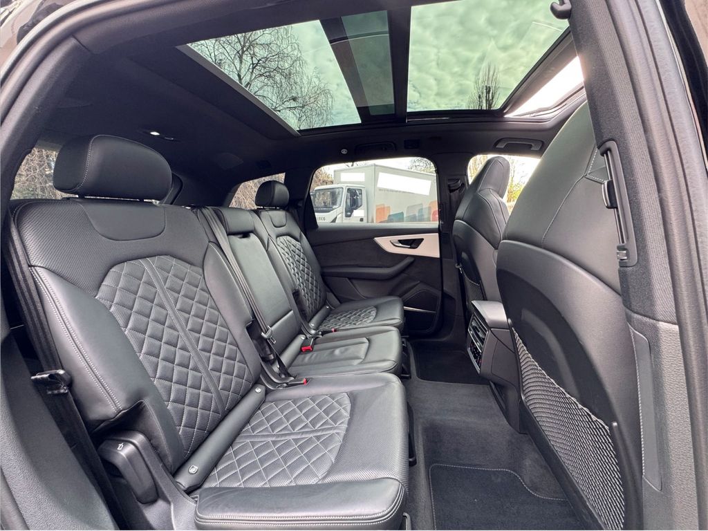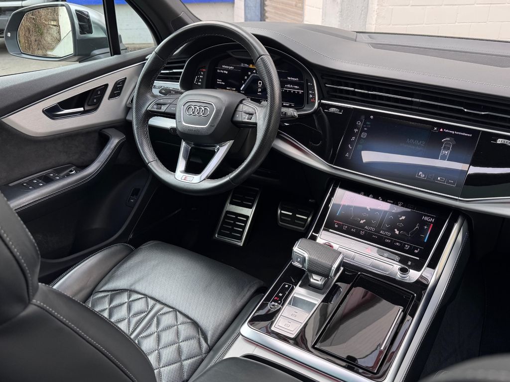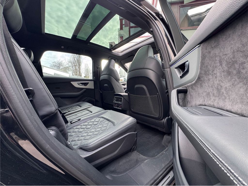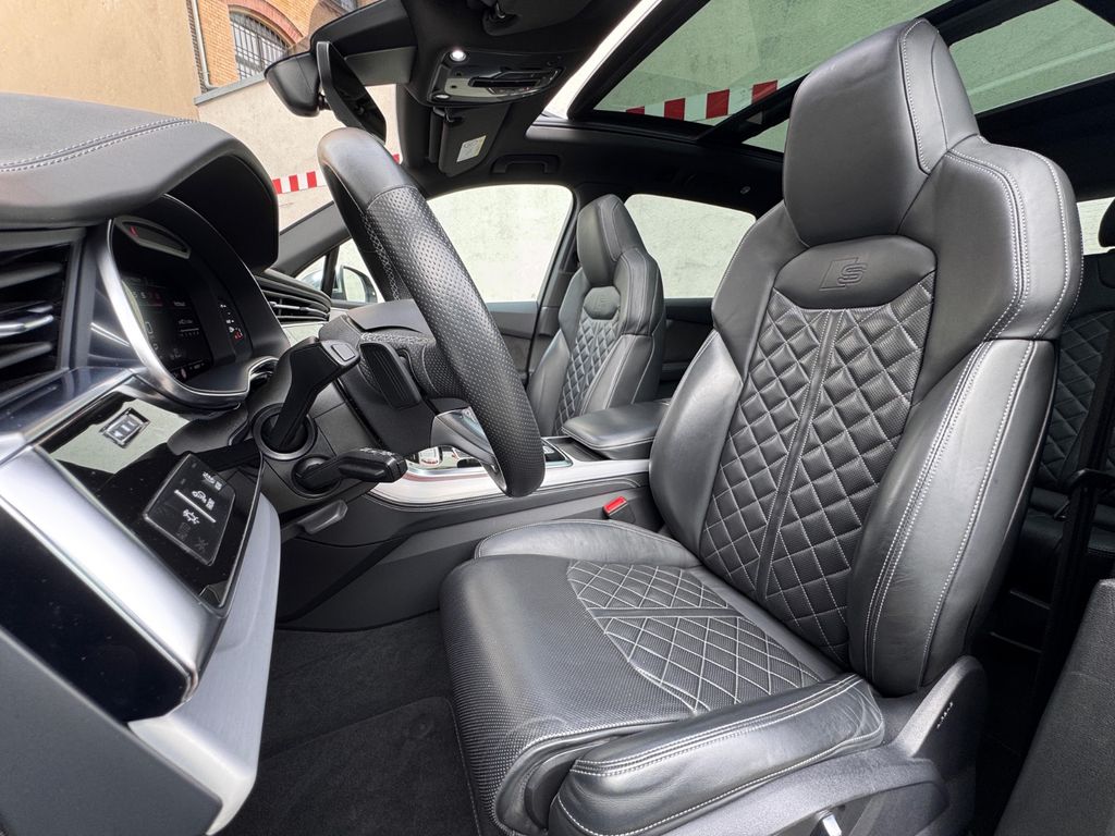 Dieser gepflegte Audi SQ7 aus dem Jahr 2022 präsentiert sich in elegantem Schwarz mit schwarzer Lederausstattung. Mit nur einem Vorbesitzer und vollständiger Servicehistorie bietet dieses leistungsstarke SUV 507 PS und einen 4,0-Liter V8-Motor. Die Ausstattung umfasst ein digitales Cockpit, Head-up-Display, 360-Grad-Kamera und automatisches Einparksystem. Das Fahrzeug verfügt über Luftfederung, dynamische Fahrwerksregelung und Allradantrieb für optimale Straßenlage. Zur Sicherheit tragen zahlreiche Assistenzsysteme bei, darunter Spurhalteassistent, Totwinkelwarner und adaptiver Tempomat. Der Innenraum überzeugt mit 3-Zonen-Klimaautomatik, beheizbaren Sitzen vorne und hinten, Ambientbeleuchtung und einem hochwertigen Soundsystem.