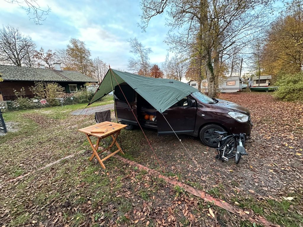 Ich trenne mich aus Altersgründen von meinem Docker schweren Herzens, da ich einige wundervolle Touren gemacht und viel erlebt habe mit ihm. Der Dacia Docker ist aufgrund des riesig langen Innenraums perfekt um darin zu übernachten. Mein Partner (1,90 m und ich 1,76 m haben super nebeneinander geschlafen).