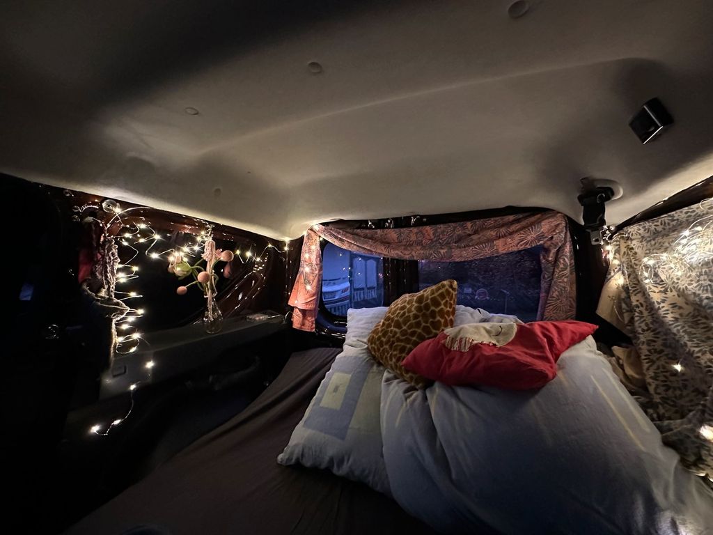 - Platz für einen höhenverstellbaren Lattenrost (Eigenbau), 190 Liegelänge diagonal, Platz für zwei Personen mit Sitzhöhe, großzügiger Kopffreiheit und Verstauungsmöglichkeit der kompletten Campingausrüstung durch cleveres Lattenrostdesign (wird auf Wunsch mit dazugegeben)