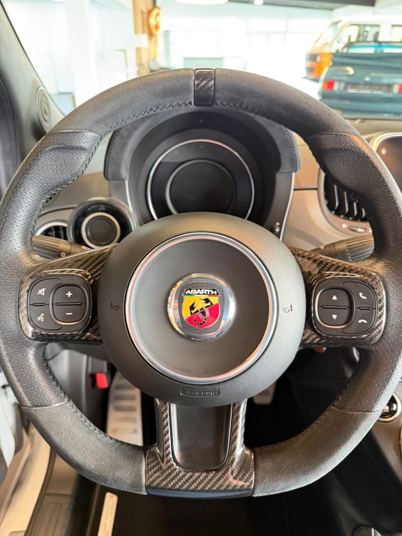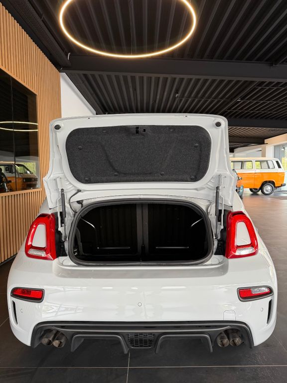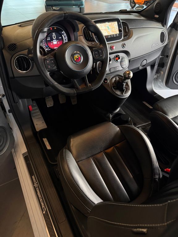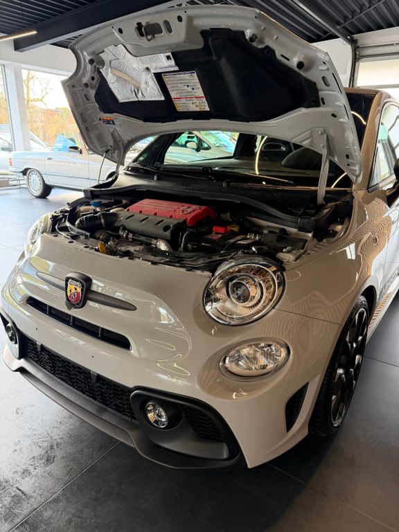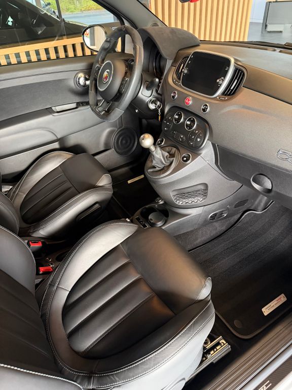 Dieser seltene Abarth 595 Competizione mit nur 9895km aus dem Jahr 2017 bietet sportliche Fahrleistungen mit 179 PS aus seinem 1368 ccm Vierzylinder-Motor. Der Kleinwagen in der Abart Farbe Grigio überzeugt durch seine umfangreiche Ausstattung und eine gepflegte Servicehistorie. Mit Frontantrieb und manuellem Getriebe verspricht er ein dynamisches Fahrerlebnis, unterstützt durch das Performance-Handling-System und Sportpaket. Der Innenraum in schwarzem Leder verfügt über Sportsitze, ein Alcantara/ Lochleder und Carbon Lenkrad und beheizbare Sitze.Moderne Technologie wie Navigationssystem, Bluetooth, Freisprecheinrichtung und Touchscreen sorgen für Komfort und Konnektivität. Die Sicherheit wird durch ABS, ESP, Traktionskontrolle, Front- und Seitenairbags sowie Reifendruckkontrolle gewährleistet. Das Fahrzeug erfüllt die Euro-6-Norm und trägt die grüne Umweltplakette.