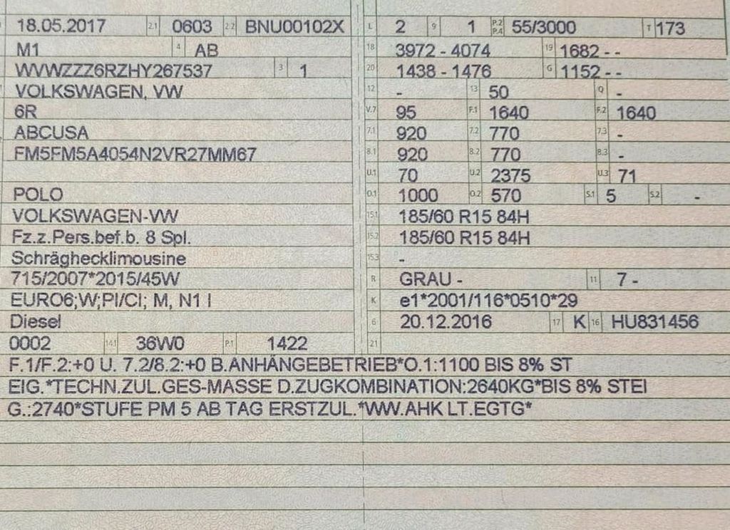 Hallo zusammen,ich verkaufe einen VW Polo 1.4 TDI, Baujahr 2017, 5-Türer, mit gültigem TÜV bis Januar 2028. Der Wagen hat 150.000 Kilometer auf dem Tacho. Die Bremsen (vorne und hinten) wurden kürzlich erneuert. Das Auto fährt einwandfrei und ist sehr sparsam im Verbrauch. Zwei Schlüssel sind vorhanden.