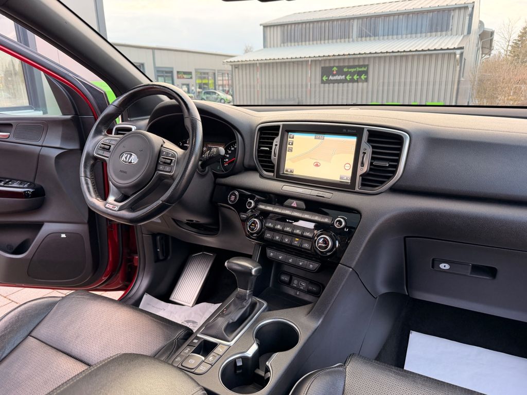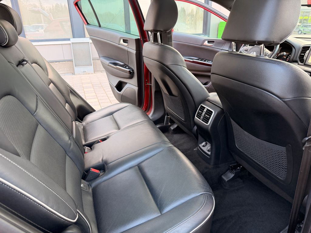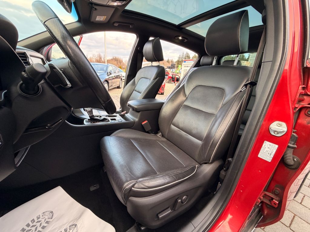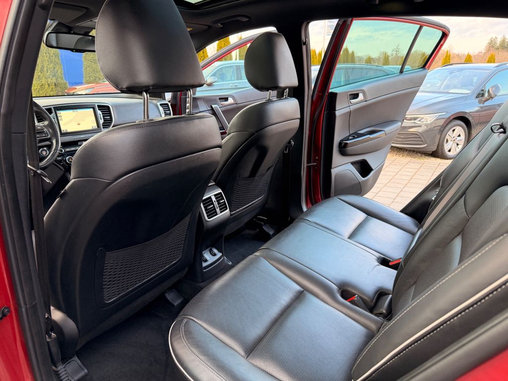 Dieser gepflegte KIA Sportage aus dem Jahr 2016 präsentiert sich in attraktivem Rot-Metallic und überzeugt durch seine umfangreiche Ausstattung. Mit nur einem Vorbesitzer und lückenloser Servicehistorie bietet dieses Allrad-SUV sowohl Komfort als auch Sicherheit. Der 185 PS starke Dieselmotor mit Automatikgetriebe sorgt für kraftvolle Fahrleistungen bei gleichzeitiger Effizienz (Euro 6). Das Interieur besticht durch schwarze Lederausstattung, Sportsitze und ein Panorama-Glasdach. Die 2-Zonen-Klimaautomatik, beheizte Vorder- und Rücksitze sowie belüftete Sitze garantieren Komfort zu jeder Jahreszeit. Für Sicherheit sorgen zahlreiche Assistenzsysteme wie Spurhalteassistent, Totwinkelwarner und Kollisionsvermeidung.- Allradantrieb mit Automatikgetriebe und 185 PS Dieselmotor (Euro 6)