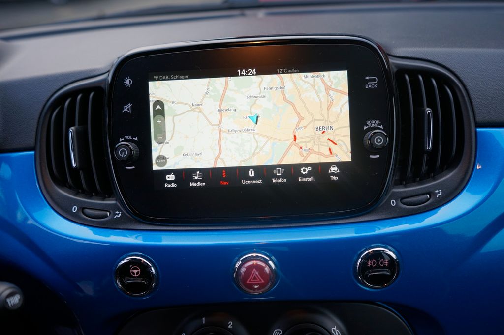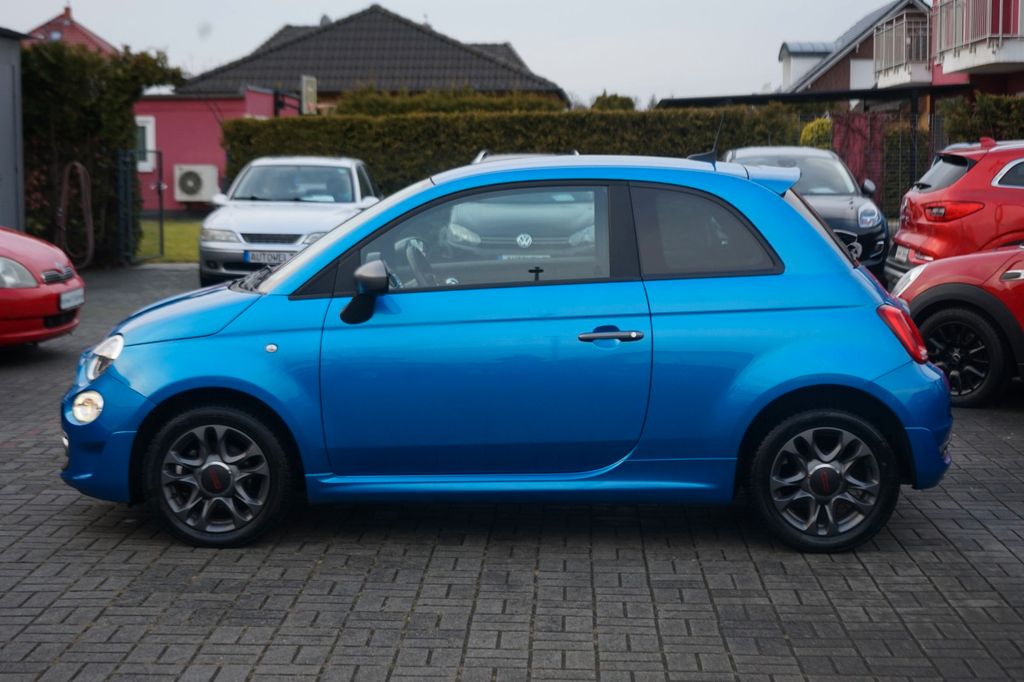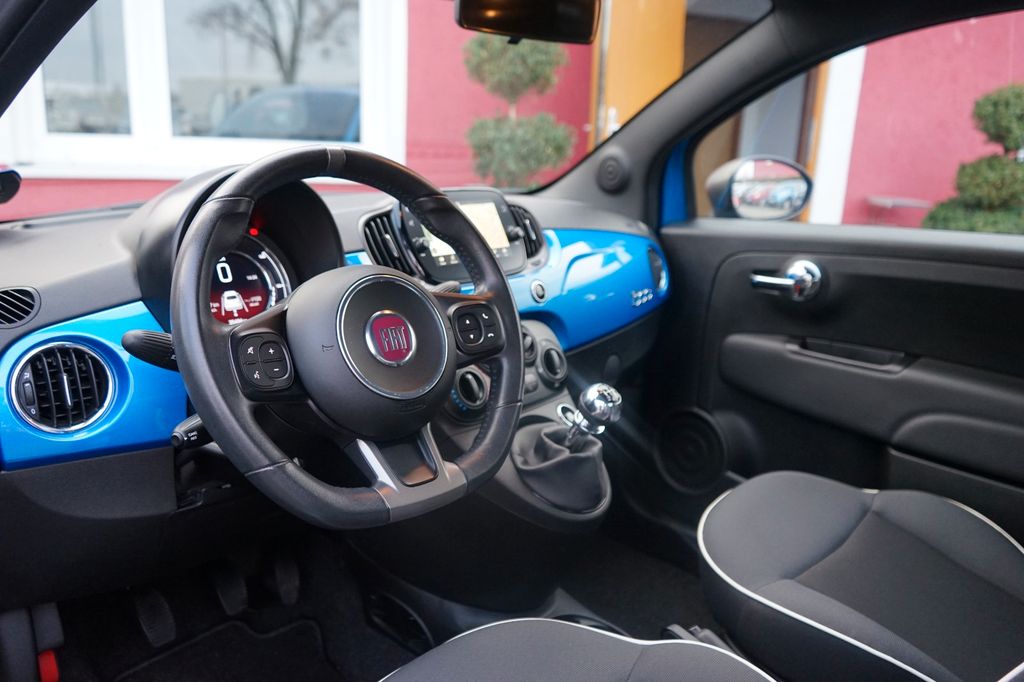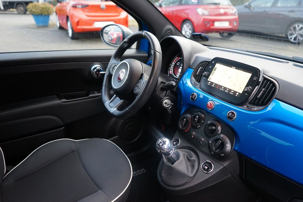 Dieser gepflegte Fiat 500 aus dem Jahr 2019 präsentiert sich in attraktivem Blau mit Metallic-Lackierung. Der Kleinwagen überzeugt durch seine kompakten Abmessungen (3.571 mm × 1.627 mm × 1.488 mm) und bietet dennoch Platz für vier Personen. Mit seinem 1,2-Liter-Motor und 69 PS fährt er spritzig und effizient durch die Stadt. Die Ausstattung umfasst eine manuelle Klimaanlage, Multifunktionslenkrad aus Leder und ein modernes Infotainmentsystem mit Navigationssystem, Apple CarPlay und Android Auto. Der Fiat erfüllt die Euro-6-Norm und trägt die grüne Umweltplakette. Für zusätzliche Sicherheit sorgen Front- und Seitenairbags, ABS, ESP, Kollisionsvermeidungssystem und Berganfahrhilfe. Die Teilledersitze in Schwarz verleihen dem Innenraum eine sportliche Note.- Frontantrieb mit manuellem Schaltgetriebe