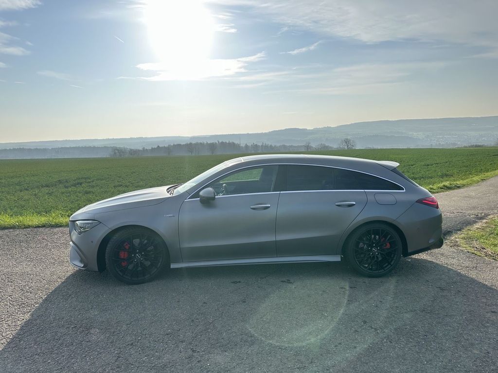 Besonders hervorzuheben ist die Farbe MANUFAKTUR Magno Lack mountaingrau, die dem Fahrzeug in Verbindung mit dem AMG-Design eine extrem starke Präsenz verleiht. Gerade als Shooting Brake wirkt der CLA 45 S damit sportlich, eigenständig und deutlich besonderer als viele vergleichbare Fahrzeuge.