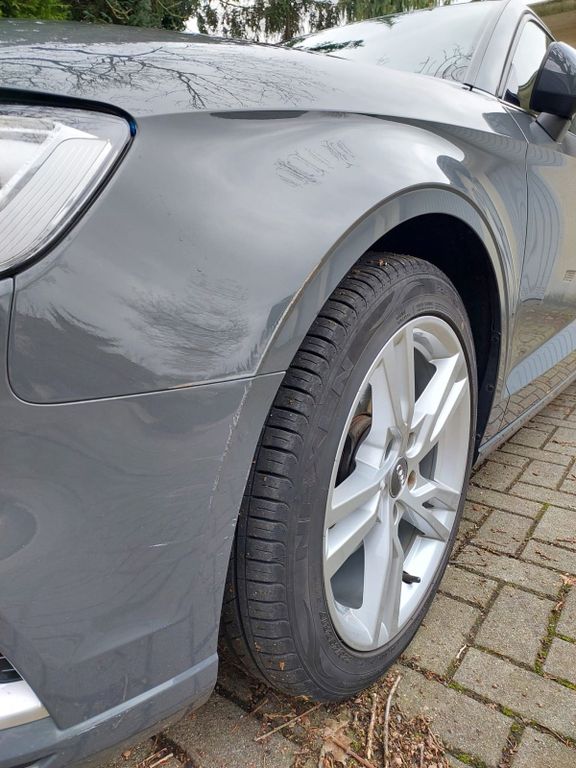 Vorne links an der Stoßstange befindet sich ein kleiner Kratzer (siehe Bilder).