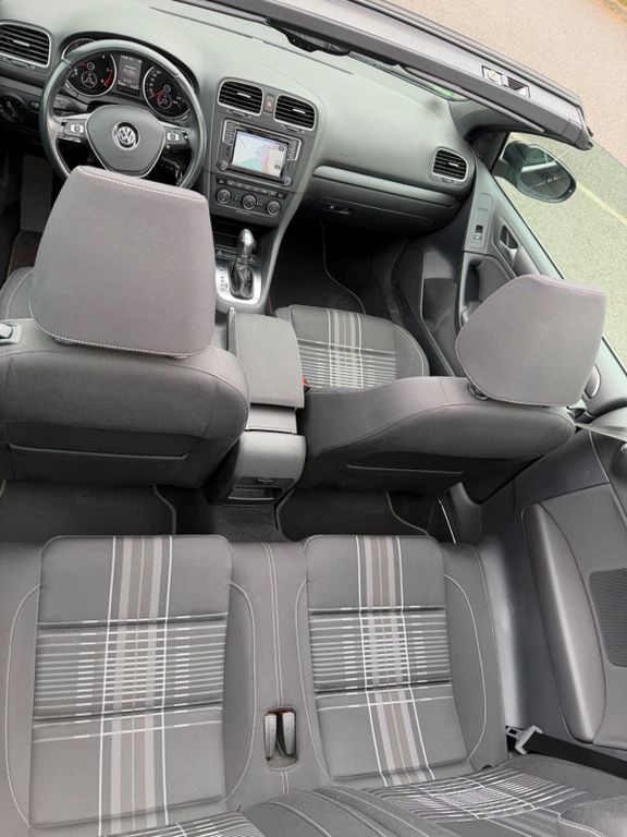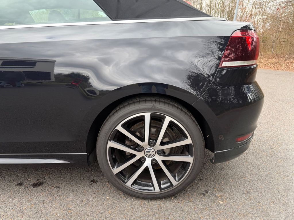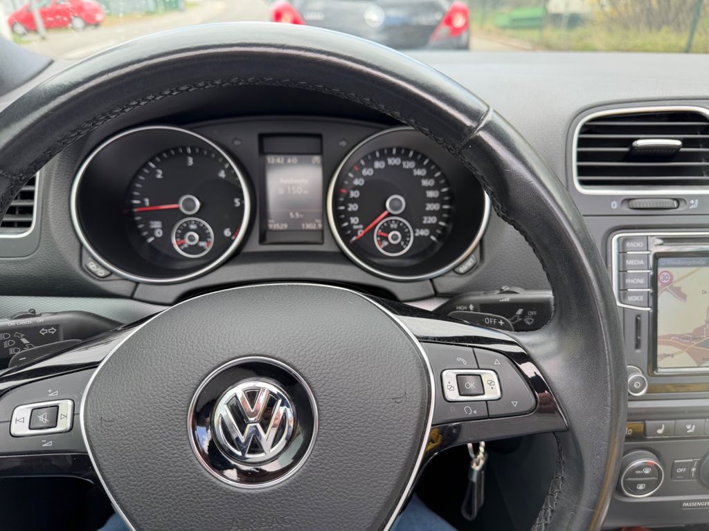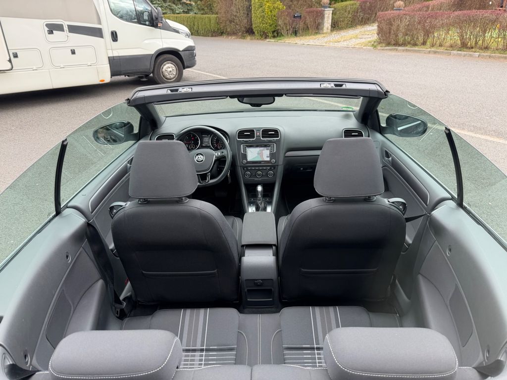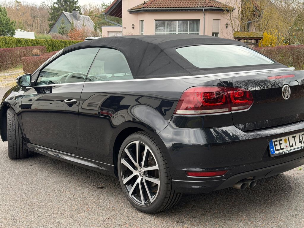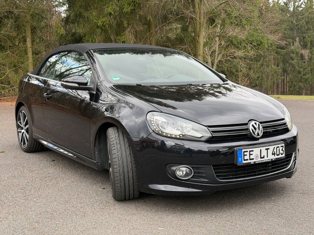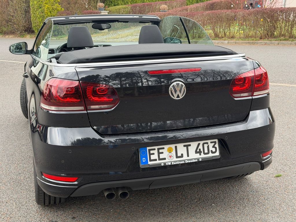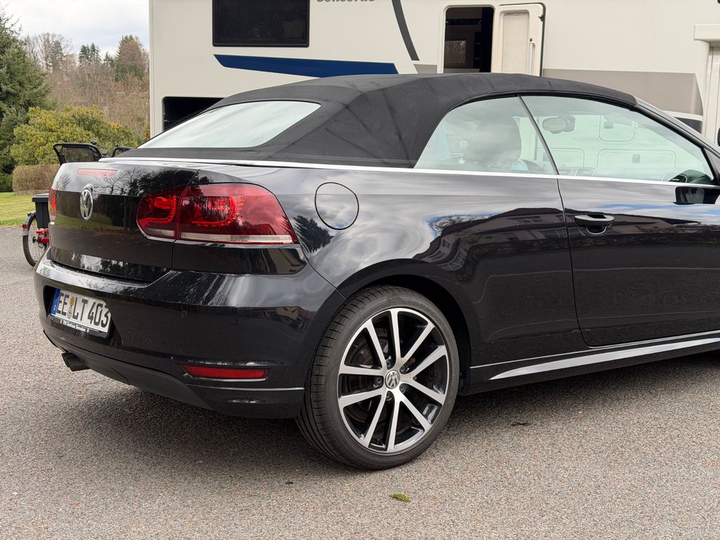 Zum Verkauf steht ein Golf 7 Cabriolet „Lounge“, BlueMotion Technology, 2,0 TDI 150 PS, 6-Gang-DSG in Deep Black Perleffekt. Die Erstzulassung des Fahrzeugs ist Februar 2016 und somit einer der Letzten, bevor das Modell eingestellt wurde.Zusätzliche Sonderausstattung zur Ausführung Lounge: „Komfortpaket“ (u.a. GRA, Mittelarmlehne, 12V Steckdose, Windschott), „Lounge Plus“ Paket (u.a. 18 Zoll Charleston 225/40/18, Bi-Xenon), „Technikpaket“, Anhängevorrichtung abnehmbar (unbenutzt), Rückfahrkamera, Sportfahrwerk, Winterräder 205/55/16. Serienausstattung u.a. Sportsitze, Navigation Discover Media, Sitzheizung, Multifunktions- Lederlenkrad, Climatronic 2 Zonen, MFA Premium, Parkpilot, u.v.a. mehr. Das Fahrzeug ist bis zum heutigen Tag checkheftgepflegt, letzte Durchsicht am 20.03.2026 bei 93.337 km. Einen, über die Versicherung, in der Fachwerkstatt reparierter Unfallschaden im Frontbereich. TÜV bis 06,27. Der Golf wurde vom Geschäftsführer einer GmbH für seine Frau gekauft, zunächst auf die GmbH zugelassen, später von der GmbH abgekauft und privat angemeldet. Insofern erste Hand mit zwei Eintragungen im Brief. Ein leichter Kratzer vorn rechts am Radlauf, siehe Foto. Die Sommerräder sind 2x DOT 19 mit 5,5mm und 2x DOT 23 mit 7,5mm, die Winterreifen sind 4x DOT 15 mit 5,5mm und 7,5mm. Es handelt sich um ein Garagen- und Nichtraucherfahrzeug. Es gibt keinen Wartungsstau und keine bekannten Mängel. Das Auto ist 100% funktionsfähig und aktuell noch angemeldet. Bei Sympathie kann das Fahrzeug zur Überführung angemeldet übergeben werden. Der Preis ist verhandelbar. Zahlung bar vor Ort und/ oder Sofortüberweisung. Tierfreier Nichtraucherhaushalt. Fragen jederzeit gern. Probefahrt bei Hinterlegung des Kaufpreises möglich. Kein Tausch, kein Export. Kein Verkauf an Gewerbe. Keine Garantie, Rücknahme, Gewährleistung. Privatverkauf.