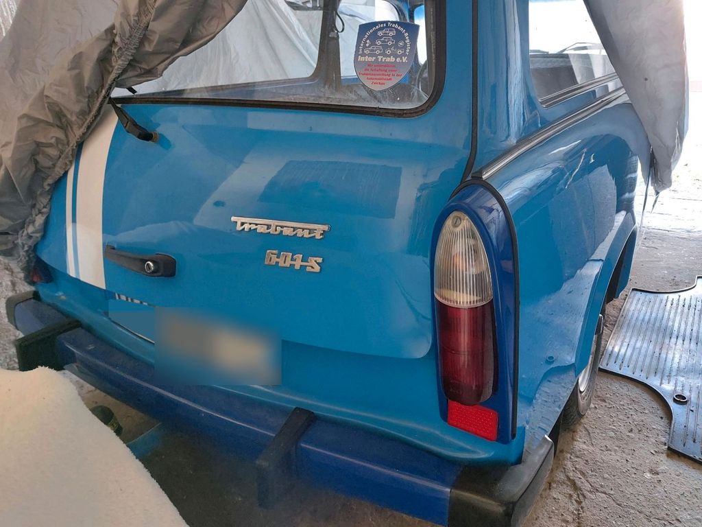 Ich verkaufe schweren Herzenz meinen liebevoll aufgebauten Trabant, da ich einfach zu wenig Zeit habe und zu viele Hobbys. Es ist kein Notverkauf! Ich hoffe er findet einen neuen Besitzer der ihn zu schätzen weiß. Alles am Fahreug ist auch eingetragen (Fahrwerk vorne Blattfeder und Hinterachse Schraubenfeder, Sturzkorrektur Hinterachse). Spur und Sturz wurden natürlich in einer Fachwerkstatt eingestellt. Vor 2 Jahren wurde die Bremse komplett erneuert. Bremsschläuche und Bremsleitungen mit Hauptbremszylinder und Belägen inkl. Radbremszylinder. Buchsen wurden vor 4 Jahren erneuert. Er steht jetzt schon über einem Jahr in der Garage und wurde nicht bewegt. Es sollte mal der Vergaser gereinigt werden und dann ab zum TÜV, denn der ist aktuell abgelaufen. Fahrzeug ist aber noch angemeldet.