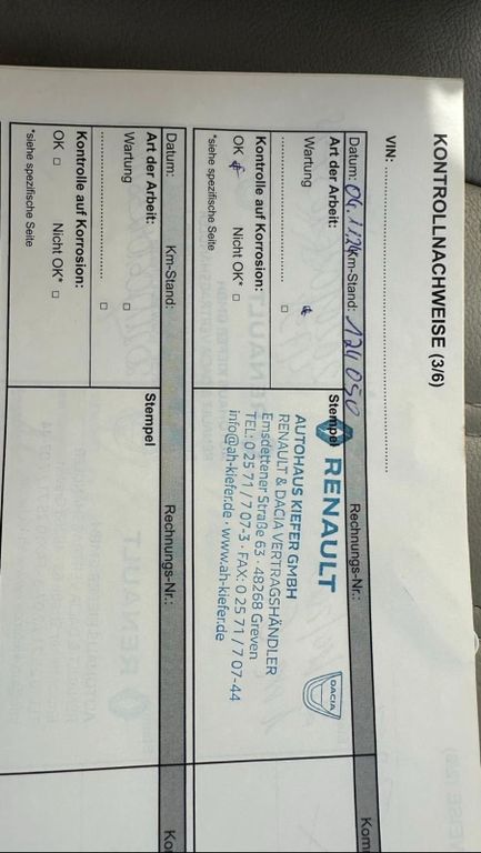 Technisch ist das Fahrzeug in einem sehr guten Zustand. Der Motor wurde bei ca. 111.000 km bei Renault erneuert (mit Rechnung und Garantie). Der neue Motor hat aktuell nur ca. 30.000 km gelaufen. Zudem wurde der DPF (Dieselpartikelfilter) vor Kurzem professionell gereinigt und das AGR-Ventil wurde ebenfalls erneuert. Dadurch läuft der Motor sauber und zuverlässig.