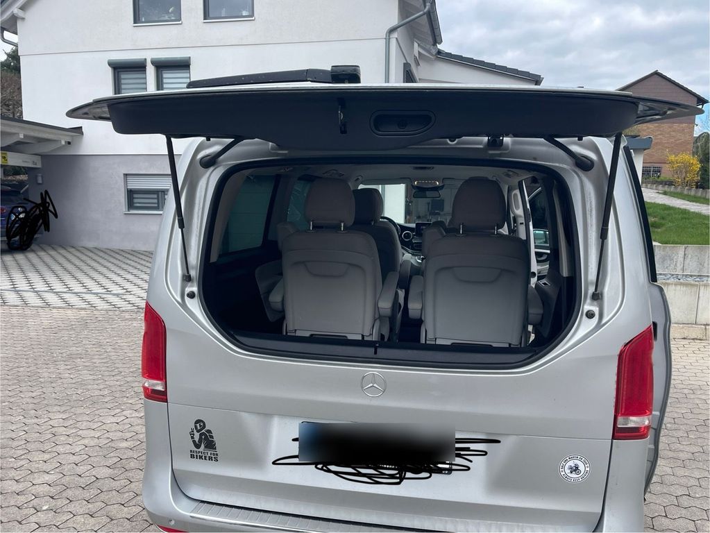 Wir verkaufen unsere V-Klasse da wir uns ein kleineres Auto kaufen. Sie wurde immer gepflegt und steht immer in der Garage. Sie wird weiterhin noch gefahren deswegen kommen noch weitere Kilometer hinzu. Auch dabei ist ein Satz Sommerräder in schwarz. Diese werden demnächst montiert. Wir haben immer die Servicientervalle eingehalten aber nicht immer bei Mercedes gemacht. Rechnungen vorhanden.Eine Ablage ( Kofferraum) ist auch vorhanden welche wir aber nie im Auto gelassen haben, darum auch keine Bilder.