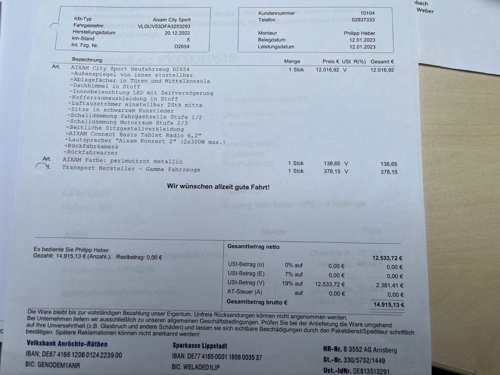 Neupreis 14.915 / Originalrechnung ist vorhanden