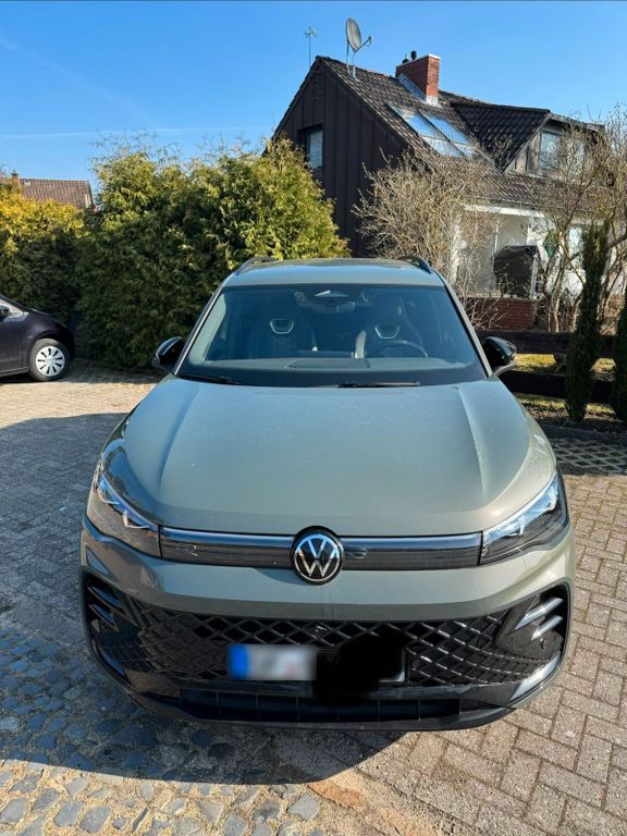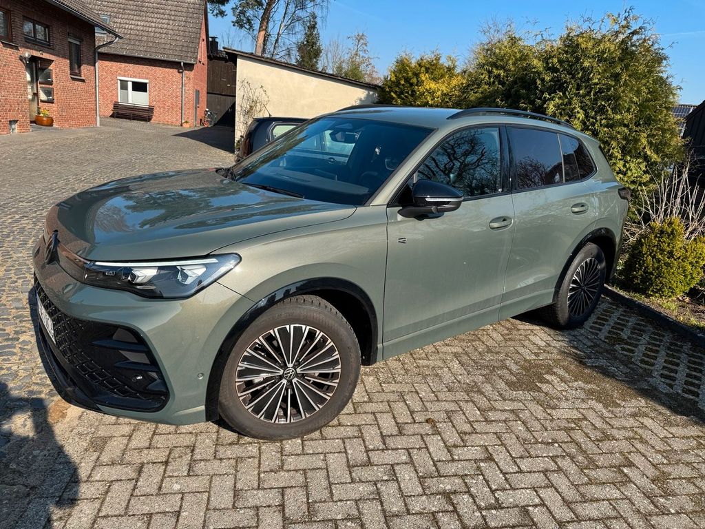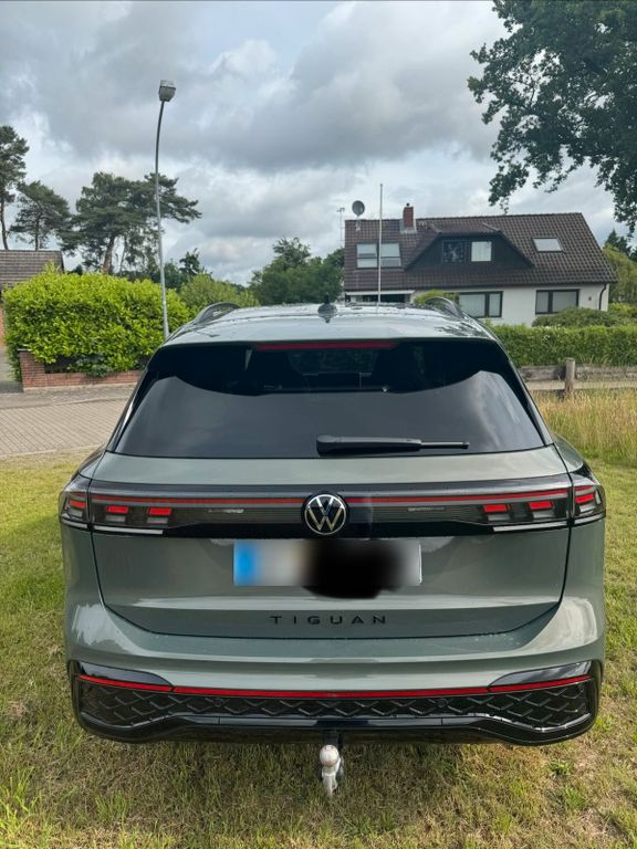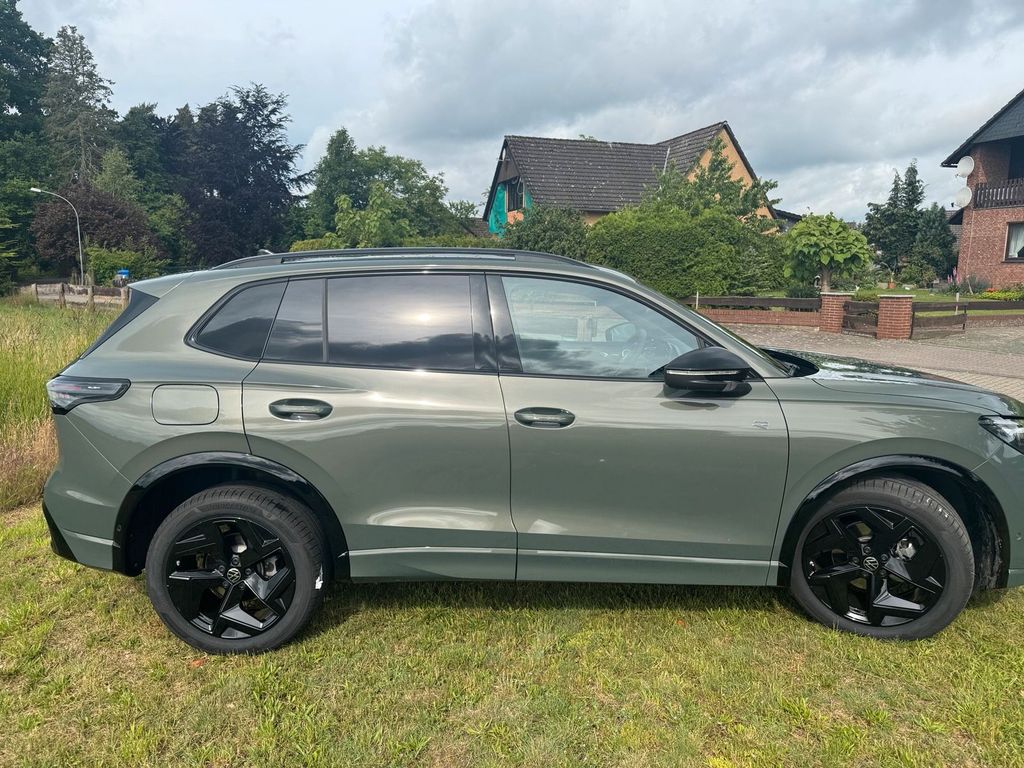 TIGUAN R-LINE BLACK STYLE DSG:In der dunkelgrünen Außenlackierung: Cipressimo Grün, welche in Kombination mit dem R-Line Sportpaket (andere Front-/ Heckschürze, Schweller, Heckspoiler, schwarzer Dachhimmel, Cockpitbezug in Leder mit blauer Naht, spezielle Sitze und Lenkrad, sowie das Black Style Sonderpaket mit schwarzen Außenspiegeln, Radkastenumrandungen, Dachreling und vielen weiteren Detailapplikationen) optisch zu einem echten Hingucker macht und das Fahrzeug zu einem normalen Tiguan noch einmal deutlich aufwertet.