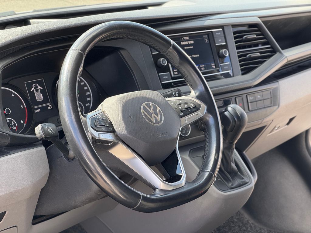 Ausstattungs-Paket: Komfort-Paket Plus, Fahrassistenz-System: Autom. Distanzregelung (ACC) und Umfeldbeobachtungssystem (Front Assist, bis 210 km/h), Fahrassistenz-System: Einparkhilfe vorn und hinten, Fzg. ohne Kindersicherung im Lade-/Fahrgastraum, Heckflügeltüren ohne Verglasung, Laderaumtrennwand hoch ohne Fenster, LKW-Zulassung, Multifunktionsanzeige Plus, Notrufsystem, Reifenkontroll-Anzeige, Reserverad in Fahrbereifung, Scheinwerfer LED, Schriftzug Transporter am Kotflügel, Verkleidung im Lade-/FG-Raum: Hartfaser halbhoch, Verzurrösen verstärkt, Zul. Gesamtgewicht 3,20 t (inkl. Stahlfelgen 16" verstärkt)