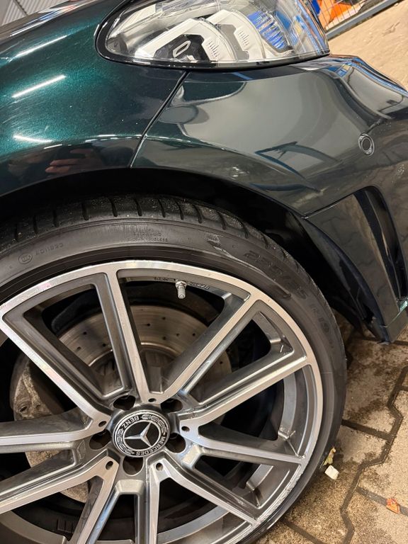 - 19 Zoll Sommerzubehörfelgen teilweise zerkratzt und eine Felge sollte ggf. ausgetauscht oder repariert werden (vorne rechts siehe Bild)