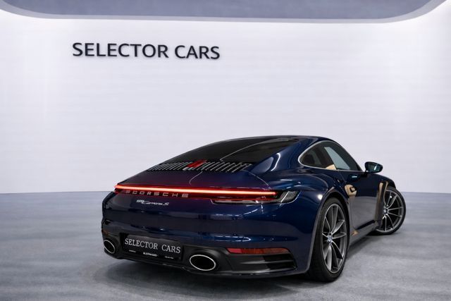 Außen-/Innenspiegel mit Abblendautomatik und Regensensor, Außenspiegel elektr. anklappbar, Einstiegsblenden (Aluminium Dark Silver) beleuchtet, Fahrassistenz-System: Spurwechselassistent, Fensterzierleisten Aluminium, Fzg. ohne Modellbezeichnung, Fzg. ohne Typbezeichnung auf den Kopfstützen, Interieur-Paket: Aluminium gebürstet, LM-Felgen vorn/hinten: 8,5x20 / 11,5x21 (Carrera Classic Rad, glanzgedreht), Reifen-Reparaturkit, Schiebedach elektrisch (Glas), Servolenkung Plus (geschwindigkeitsabhängig), Sitzheizung vorn, Sound-System BOSE, Sport-Auspuffanlage, Endrohre Edelstahl, Sport-Fahrwerk (PASM) elektronisch gesteuert, Sportsitze vollelektrisch (14-Wege) inkl. Memory-Paket