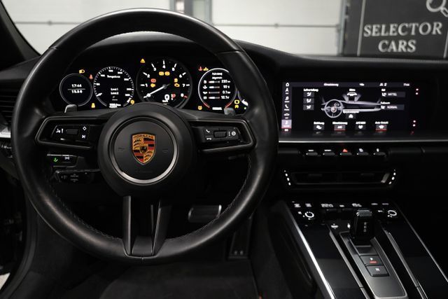 Airbag Fahrer-/Beifahrerseite, Antriebsart: Heckantrieb, Außenspiegel asphärisch, links, Außenspiegel elektr. verstell- und heizbar, beide, Blinkleuchten LED, Bremssättel Rot lackiert, Connect Plus (Bluetooth, Apple CarPlay, WLAN, Vehicle-Tracking-System), Dachhimmel Stoff, Diebstahl-Warnanlage mit Innenraumüberwachung, Drehzahlmesser, Einschaltautomatik für Fahrlicht, Einstiegsblenden mit Modellbezeichnung (Aluminium), Fahrassistenz-System: Berganfahr-Assistent (Hill-Holder), Fahrassistenz-System: Kollisionswarnsystem mit Bremseingriff und Fußgängererkennung, Fahrassistenz-System: Park-Assistent vorn und hinten, Fußmatten, Getriebe 8-Gang - Doppelkupplungsgetriebe (PDK), Getränkehalter, Hauptscheinwerfer LED, Heckleuchten LED, Heckscheibe heizbar, Heckspoiler, Innenausstattung: Leder, Serienlederfarbe, Innenraumfilter: Aktivkohlefilter (Geruchsfilter), Isofix-Aufnahmen für Kindersitz an Beifahrersitz, Karosserie: 2-türig, Keyless Drive, Kleiderhaken Sitzrückenlehne Leder, Klimaautomatik 2-Zonen, Kopf-Airbag-System Porsche Side Impact Protection System (POSIP), Kopf-Schulter-Airbag vorn (Thoraxbag), Motor 3,0 Ltr. - 331 kW KAT, Otto-Partikelfilter (OPF), Parkbremse elektrisch, Porsche Active Suspension Management (PASM), Porsche Communications Management (PCM) inkl. Online - Navigationsmodul, Porsche Torque Vectoring Plus (PTV Plus), Reifendruck-Kontrollsystem, Schadstoffarm nach Abgasnorm Euro 6d-TEMP, Schriftzug Modellreihe, Schwellerabdeckung / -verkleidung lackiert, Sport Taste, Start/Stop-Anlage, Turbo, Uni-Lackierung, Vehicle-Tracking-System (PVTS), Verglasung getönt