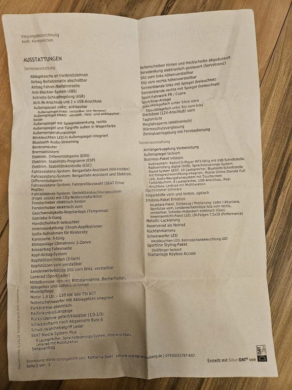 Verkaufen aufgrund von Fahrzeugwechsel durch Familienzuwachs schweren Herzens unseren schönen zuverlässigen Seat Leon. Fahrzeug hat eine sehr gute Ausstattung von DAB Radio mit Sound System bis hin zum Panorama Dach. Tieferlegungsfedern von ST Performance mit 20mm sind auch verbaut für eine tolle Optik. Hintere Scheiben und Heckscheibe wurde durch eine Tönungsfolie mit UV Schutz foliert, Fahrzeug wird noch bewegt, natürlich sind hier und da Gebrauchsspuren vorhanden, das meiste kann man den Bildern entnehmen, sonstige Ausstattung auch in Fotos zu sehen, 8 Fach Bereift, Fahrzeug steht auf Winterreifen (Fotos), Sommerreifen Original 18 Zoll Seat Felgen, für Fragen stehe ich gerne zur Verfügung, unseriöse Anfragen werden nicht beantwortet, Besichtigung und Probefahrt natürlich möglichDurch Privatverkauf keinerlei Garantie oder Gewährleistung