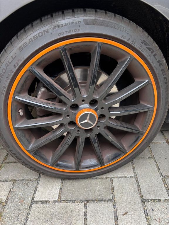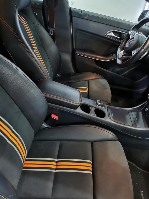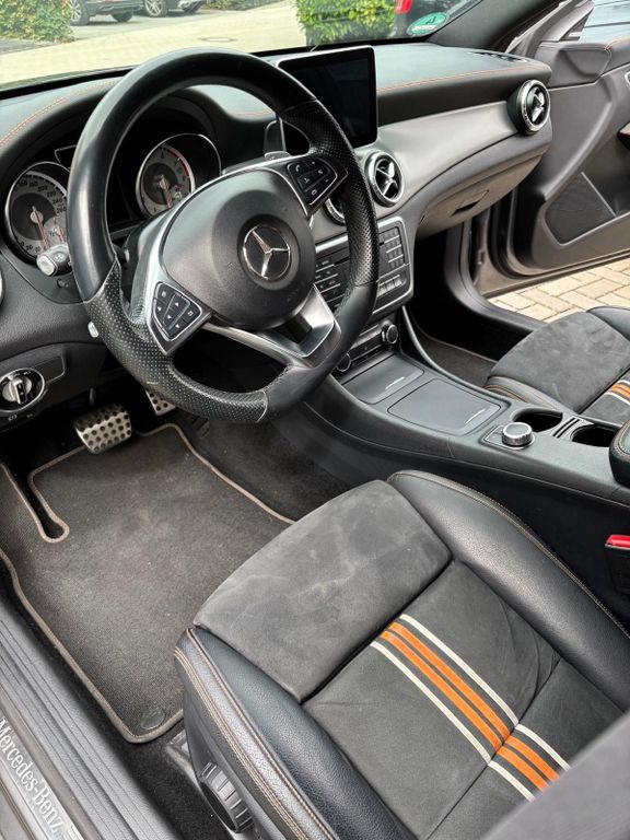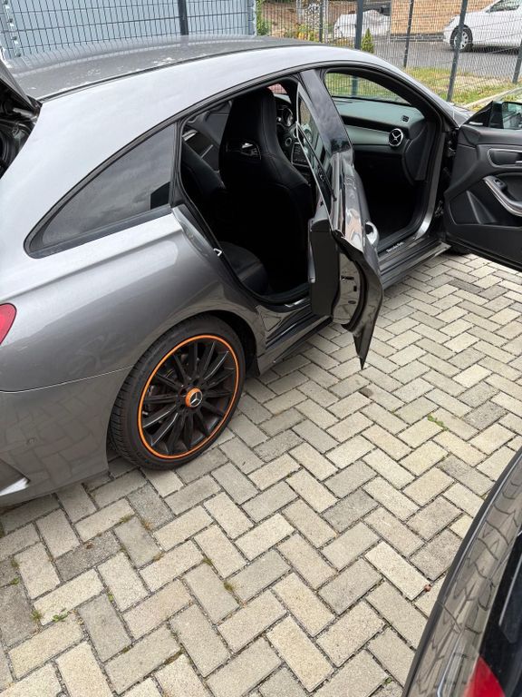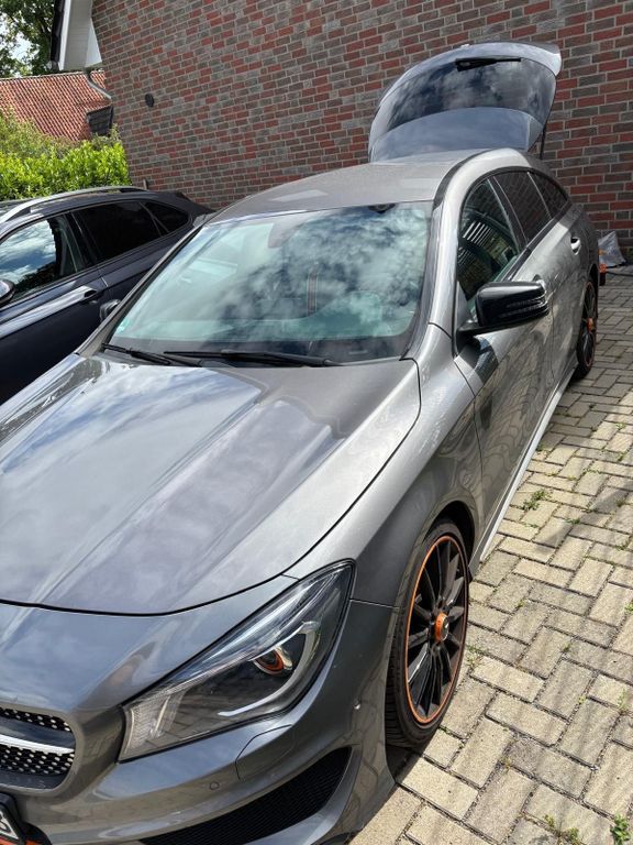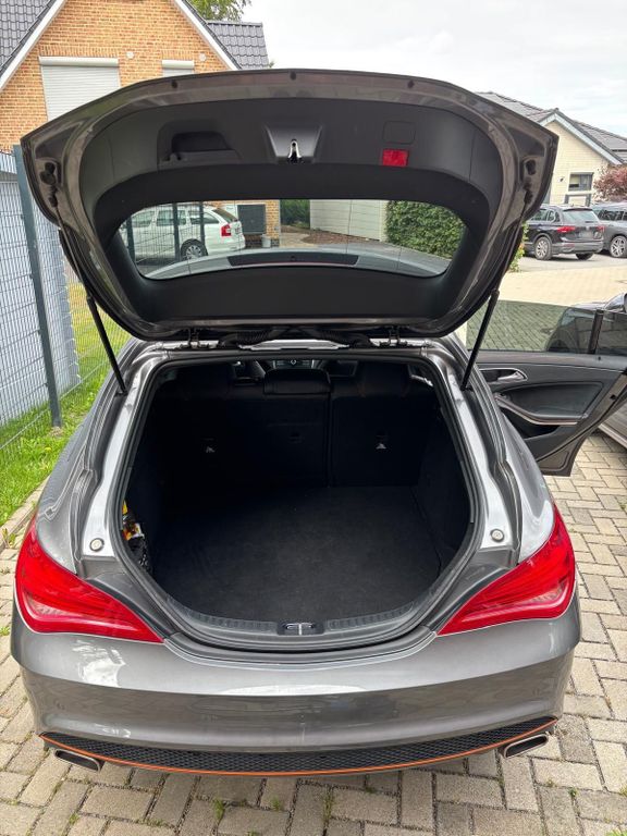 Optisch überzeugt das Fahrzeug mit seiner sportlichen und zugleich eleganten Ausstattung. Die orangefarbenen Akzente außen und innen machen den CLA zu einem echten Hingucker. Durch die Shooting-Brake-Form bietet er nicht nur eine schöne Optik, sondern auch einen alltagstauglichen und geräumigen Kofferraum.