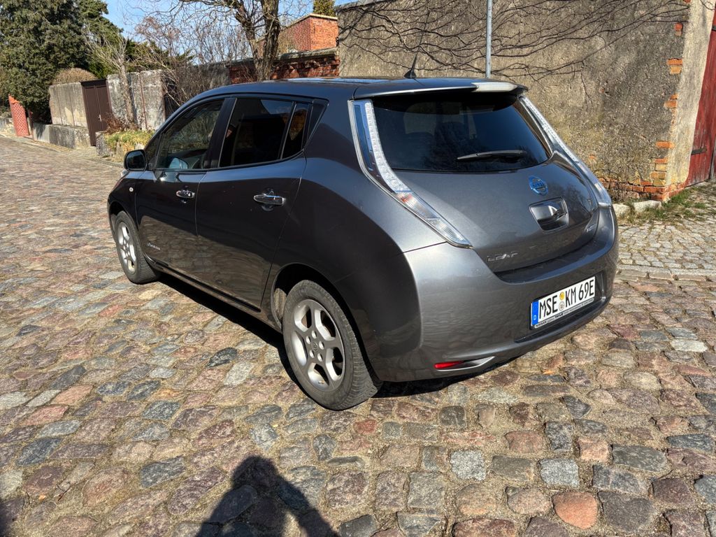 3. Bremsleuchte, 6 Lautsprecher, Airbag Beifahrerseite abschaltbar, Airbag Fahrer-/Beifahrerseite und Seitenairbag vorn, Audiobedienung am Lenkrad, Ausstattungs-Paket: Nissan Connect EV, Automatische Fahrlichtschaltung, Außenspiegel elektr. anklappbar, Außenspiegel Wagenfarbe, Bordcomputer, Bremsassistent (Nissan Brake-Assist), Dachantenne, Elektr. Bremskraftverteilung (EBD), Elektromotor 80 kW, Fahrassistenz-System: Berganfahr-Assistent, Fahrzeug mit HV-Leasing-Batterie, Fensterheber elektrisch vorn + hinten, Fzg. mit HV-Leasing-Batterie 30 kWh, Gurtstraffer, Handschuhfach beleuchtet, Innenraumfilter: Pollenfilter, Innenspiegel abblendbar, Isofix-Aufnahmen für Kindersitz, Karosserie: 5-türig, Klimaautomatik mit Zeitsteuerung, Kopf-Airbag-System, Lenksäule (Lenkrad) höhenverstellbar, Leseleuchte vorn, LM-Felgen, Modellpflege, Nebelschlussleuchte, Rücksitz geteilt/klappbar, Schnellladevorrichtung, Sitz vorn links höhenverstellbar, Sitzbezug / Polsterung: Stoff, Sonnenblenden mit Spiegel, Start-Stop-Knopf, Stoßfänger Wagenfarbe, Türgriffe außen verchromt, Verglasung hinten abgedunkelt, Wischerintervall vorn regulierbar, Wärmeschutzverglasung mit UV-Schutz