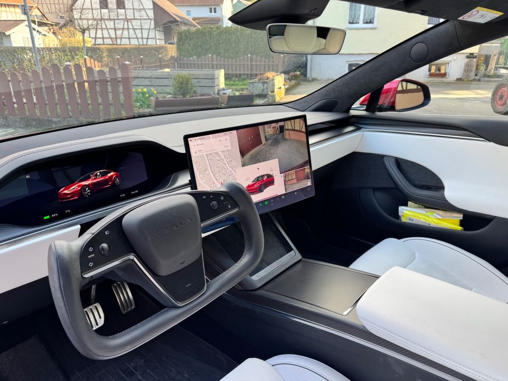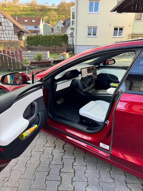 Zum Verkauf steht mein Tesla Model S Plaid in der seltenen Farbe Ultra Red mit kontrastreichem Interieur in Weiß/Schwarz und dem begehrten Yoke-Lenkrad.Highlights: