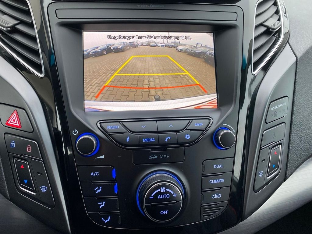 Ablagetasche an Vordersitzlehnen, Airbag Beifahrerseite abschaltbar, Airbag Fahrer-/Beifahrerseite, Aktive Kopfstützen vorn, Audio-Navigationssystem, Audiosystem Infinity, Automatische Türverriegelung (Dead Lock), Außenspiegel asphärisch, Außenspiegel elektr. anklappbar, Außenspiegel elektr. verstell- und heizbar, beide, Außenspiegel lackiert, Blinkleuchte in Außenspiegel integriert, Bluetooth-Schnittstelle, Bordcomputer mit TFT-Farbdisplay, hochauflösend, Bremsassistent, Dachreling, Dachspoiler, Einschaltautomatik für Fahrlicht / Lichtsensor, Einstiegsleisten verchromt, beleuchtet, Elektr. Bremskraftverteilung, Elektron. Stabilitätskontrolle (ESC) mit Bremsassistent, Fahrassistenz-System: Berganfahrhilfe, Fahrassistenz-System: Einpark-Assistent, Fahrassistenz-System: Einparkhilfe vorn und hinten, Fahrassistenz-System: Spurhalteassistent, Warnsystem (LDWS, Lane Departure Warning System), Fensterheber elektrisch vorn + hinten, Freisprecheinrichtung Bluetooth, Fußraumbeleuchtung, Füllstandsanzeige Scheibenwaschanlage, Gegenlenkunterstützung (Vehicle Stability Management, VSM), Gepäck-/Laderaummanagement-System, Gepäckraumabdeckung / Rollo, Getränkehalter vorn, Gurtstraffer, Handschuhfach beleuchtet, Heckklappenbetätigung elektrisch, Heckleuchten LED, Heckscheibe heizbar, Hochtöner, Innenraumfilter: Pollenfilter, Innenspiegel mit Abblendautomatik, Isofix-Aufnahmen für Kindersitz, Karosserie: 5-türig, Klimaautomatik 2-Zonen, Knieairbag, Komfort-Paket, Kopf-Airbag-System, Kühlergrill verchromt, Lenkrad heizbar, Lenksäule (Lenkrad) verstellbar, Licht- und Sicht-Paket, LM-Felgen, Mittelarmlehne hinten mit Getränkehalter, Modellpflege, Motor 2,0 Ltr. - 121 kW GDI KAT, Nebelscheinwerfer LED, Parkbremse elektrisch (EPB), Pedale Aluminium, Reifen-Reparaturkit, Reifendruck-Kontrollsystem, Rücksitzlehne geteilt/klappbar, Schadstoffarm nach Abgasnorm Euro 6, Schalt-/Wählhebelgriff Leder, Scheibenbeschlagerkennung / Regelung, Scheibenwischerenteiser vorn, Seitenairbag hinten, Seitenairbag vorn, Seitenaufprallschutz, Seitenscheiben ab B-Säule abgedunkelt, Sicherheitsgurte vorn höhenverstellbar, Sitz vorn links höhenverstellbar, Sitz vorn rechts elektr. verstellbar, Sitz vorn rechts höhenverstellbar, Sitzheizung vorn, Sonnenblenden mit Spiegel (beleuchtet), Türgriffe außen verchromt, Türgriffe außen Wagenfarbe (mit Chromleiste), Türgriffe innen verchromt, Verglasung getönt, Zigarettenanzünder