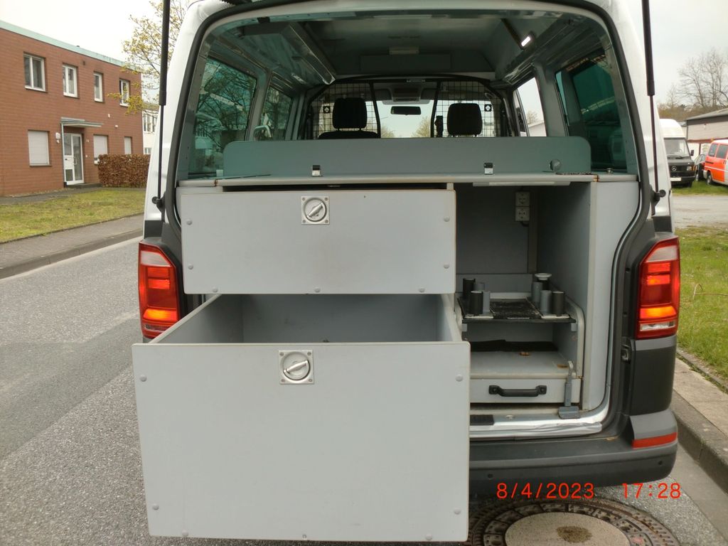 VW T6 2.0 TDI mit 205 PS Allrad 4 Motion Halbhohes Dach Lang Labor Möbel als Camper Umbau würdig. Servolenkung, ABS, Airbags, Klimaanlage, Standheizung, elektrische Fensterheber, elektrische Aussenspiegel, Zentralveriegelung mit Fernbedienung, Start/Stop, 6 Gang Schaltgetriebe, Anhängerkupplung 2500 Kg Anhängelast, RadioCD mit Touchdisply und Bluetooth Freisprechanlage, Euro6 Norm. Innenaustattung für Camper nutzbar : Profi Schränke mit stabile Auszüge, LED Lampe mit Touch Schlater, Edelstahlspüle mit Frischwasser Pumpe und Abwasser Behälter, zweite AGM Batterie , Profi Ladegerät, 220 V Externe NetzAnschluß, 220 V,Stromumwandler, Trenngiter mit durchgang, GFK Halbhohes Dach, Profi stabiles Fußboden teilweise ALU Riffelblech.