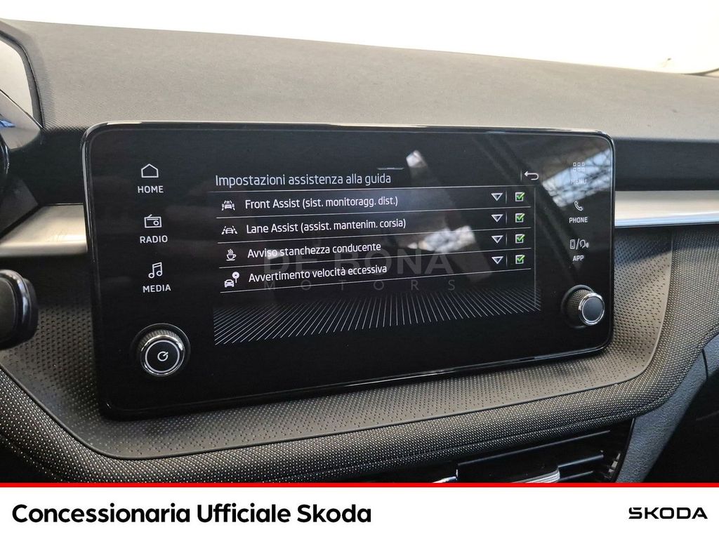 Concessionaria Ufficiale di vendita e assistenza. Contattaci per verificare la disponibilità dell'auto nella sede più vicina. Prezzo da intendersi escluso passaggio di proprietà. Vuoi sapere tutto su questo veicolo? Contattaci e comunicaci il CODICE VEICOLO:[Rif. U-Infinity01#526878-U]ALTRI OPTIONALS: 2 luci di lettura anteriori (per guidatore e passeggero), 2 Usb-c, 5 Poggiatesta regolabili in altezza, ABS, Airbag laterali anteriori, Airbag lato conducente, Airbag lato passeggero (disattivabile), Airbag per la testa a tendina, Alette parasole con specchi di cortesia; lato guidatore con fascia portaoggetti, Alzacristalli elettrici anteriori, ASR, Ausilio per partenza in salita (Hill Hold Control), Calotte specchietti di colore grigio graphite / nero tulipano, Catarinfrangenti di sicurezza sulle portiere anteriori, Cerchi (4) in lega ATRIA 6 frac12;Jx16 quot;, Chiusura centralizzata con telecomando (2 chiavi ripiegabili), Cinture di sicurezza anteriori e posteriori a tre punti (anteriori regolabili in altezza con pretensionatori), Climatizzatore Manuale, Consolle centrale con portabottiglie e vano portaoggetti, Copertura del bagagliaio, Cornice cromata attorno alla griglia del radiatore, Cruise Control, Design selection loft, Digital Display 8 quot;, Dispositivo antiavviamento elettronico (immobilizer), Driver Activity Assistant - dispositivo di riconoscimento della stanchezza del conducente, DSR, Easy light assistant (coming home, leaving home, accensione automatica dei fari), EASY START (Keyless Easy Start) chiusura centralizzata con funzione accensione e spegnimento motore senza chiave, EBD, EDL, ESBS, ESC, Fari a LED, Fari Fendinebbia Anteriori, Fari fendinebbia posteriori, Freni a disco anteriori e posteriori, Front assistant con riconoscimento pedoni - monitoraggio radar dello spazio antistante e frenata automatica di emergenza, Gruppo ottico posteriore full led con firma luminosa in tecnologia crystal lighting, HBA, Illuminazione del bagagliaio (1 lampada), Illuminazione interna per tutte le portiere, Impugnatura leva del cambio e del freno a mano in pelle, Indicatori di direzione integrati negli specchietti retrovisori laterali in tecnologia LED, Kit riparazione pneumatici (compressore 12V + flacone con liquido adesivo), LANE ASSISTANT - sistema di mantenimento del veicolo in corsia, Luce posteriore fendinebbia, Lunotto posteriore riscaldabile, MSR, Occhielli ferma carico nel bagagliaio, Pacchetto interno cromo, Pacchetto Sound - Skoda Surround con 6 altoparlanti (4 davanti e 2 dietro), Parking Distance Control - Sensori per il parcheggio anteriori e posteriori con frenata di emergenza, Portabottiglie 0,5 l nei vani portaoggetti delle portiere posteriori, Portabottiglie 1,5 l nei vani portaoggetti delle portiere lato guidatore e lato passeggero, Predisposizione barre porta carico, Predisposizione per 2 seggioli isofix con top tether sui sedili posteriori esterni e passeggero anteriore, RBS, Ricezione radio digitale DAB+, Ricircolo d'aria interno (filtri antipolline), Schienale posteriore reclinabile e diviso (rapporto 60/40), Sedile guidatore regolabile in altezza, Segnale acustico monotono, Servosterzo elettromeccanico, Sistema di monitoraggio pressione pneumatici (TPM+), Sistema Start amp; Stop e recupero energia di frenata, Skoda Care Connect - Servizi di Chiamata di emergenza (a vita) con Service Proattivo (10 anni), Skoda infotainment 8.25 quot;, Smartlink wireless con carplay (apple), android auto (google) e accesso ai dati di guida tramite my Skoda app, Soft touch - apertura elettromeccanica del bagagliaio, Specchietti retrovisori esterni regolabili e riscaldabili elettricamente nel colore della carrozzeri, Tappetini in tessuto, Tasche portaoggetti sugli schienali dei sedili anteriori, Telecamera posteriore, Tergicristalli anteriore Aero con possibilita di cambio velocita e selezionatore di frequenza, Tergicristallo lunotto posteriore con ugelli lavavetri (a intervallo fisso), Triangolo di emergenza e kit di pronto soccorso, TSA, Vani portaoggetti sulle portiere anteriori, Vano portaoggetti nel bagagliaio, sulla sinistra, Vano portaoggetti nella parte inferiore del cruscotto lato passeggero, chiuso e illuminato, Vetri atermici, Volante multifunzione in pelle a 2 razze (con comandi radio e telefono), XDS+