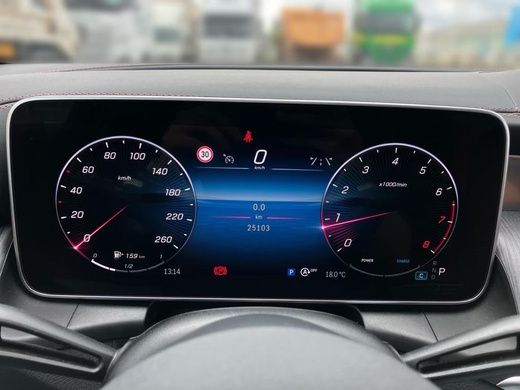 Armaturentafel Oberteil in Nappaoptik, Ausstattungs-Paket: Advanced Plus, Fzg. ohne Modellbezeichnung, Innenausstattung: Holz Linde, Anthrazit, Innenhimmel schwarz, LM-Felgen vorn/hinten: 8x19 / 9x19 (5-Speichen), Metallic-Lackierung, Multimediasystem MBUX Entertainment, Night-Paket, Panorama-Schiebedach, Sitzbezug / Polsterung: Ledernachbildung Artico 2-farbig, Sound-System mit Soundpersonalisierung, Sport-Fahrwerk, Surround-System Burmester, Trittbretter seitlich (Aluminium)